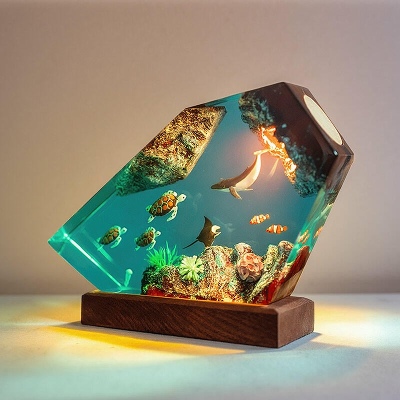 Reslol Fascinating Irregular Resin Lamp with Whales & Turtles