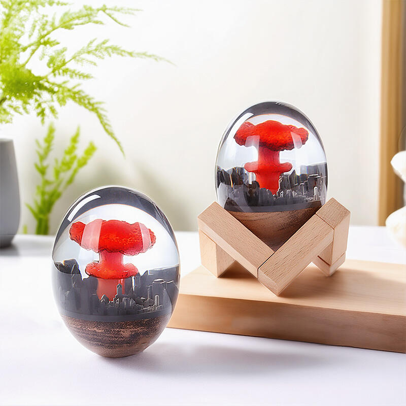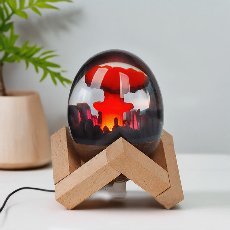 Hey, enthusiasts of out-of-the-box designs! Reslol brings you these amazing resin lamps with a distinct mushroom cloud and micro landscape theme. The detailed design of the mushroom cloud within the micro landscape creates a visually striking and thought-provoking piece.