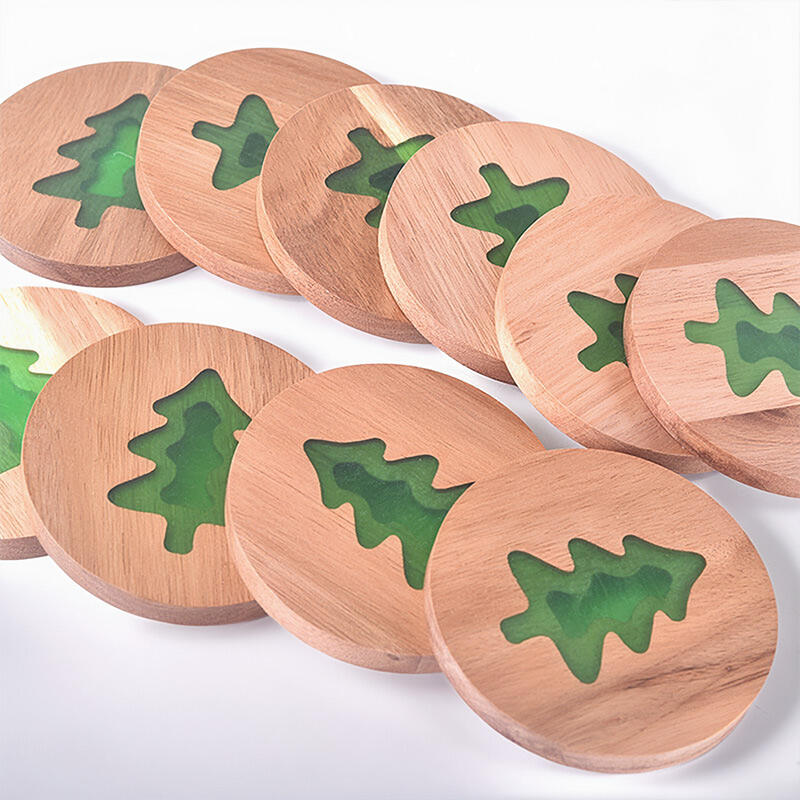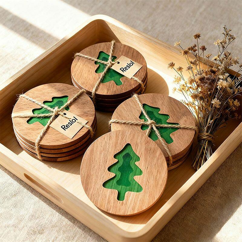 Dear Christmas enthusiasts! Dive into the holiday spirit with our Reslol Festive Round Acacia - Epoxy Christmas Coasters.