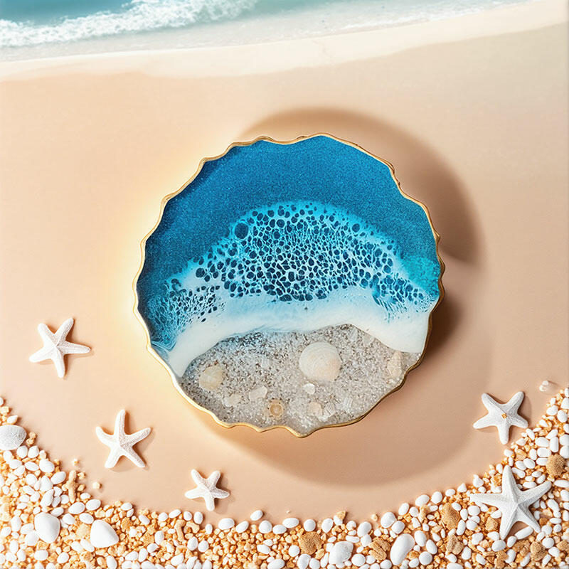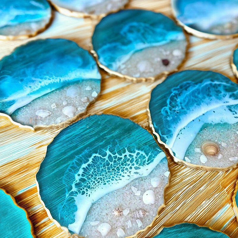 Reslol Glamorous Golden -Adorned Ocean Resin Coasters With Shells & Waves
