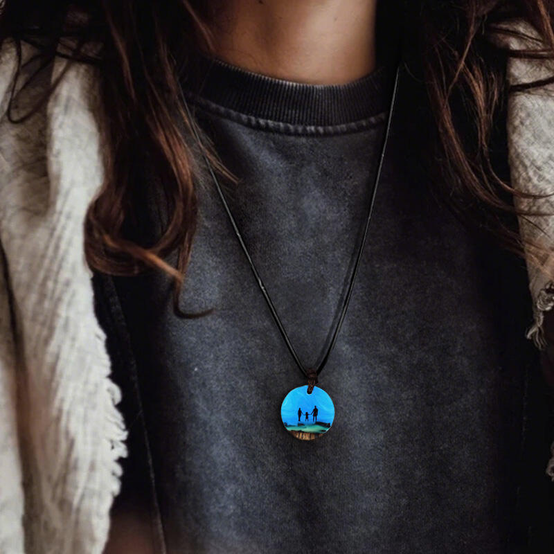 Reslol Heartwarming Family & Northern Lights Glow Resin Necklace