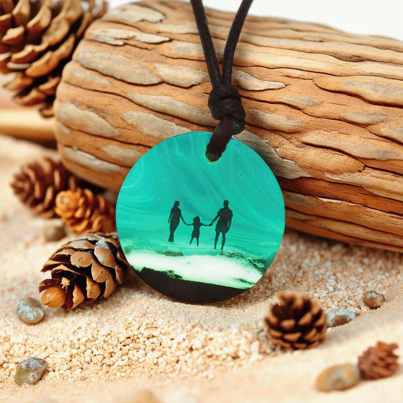Dear friends who cherish family and the beauty of nature! Our Reslol necklaces are a beautiful blend of the enchanting Northern Lights and the heartwarming image of a family. Picture a cold winter night, under the vast expanse of the Arctic sky, where the Northern Lights dance in a riot of colors, and a loving family stands together, sharing that magical moment. That's the precious scene we've immortalized in each of these necklaces.