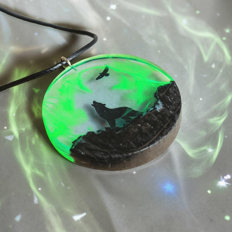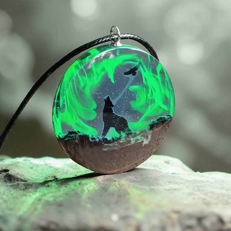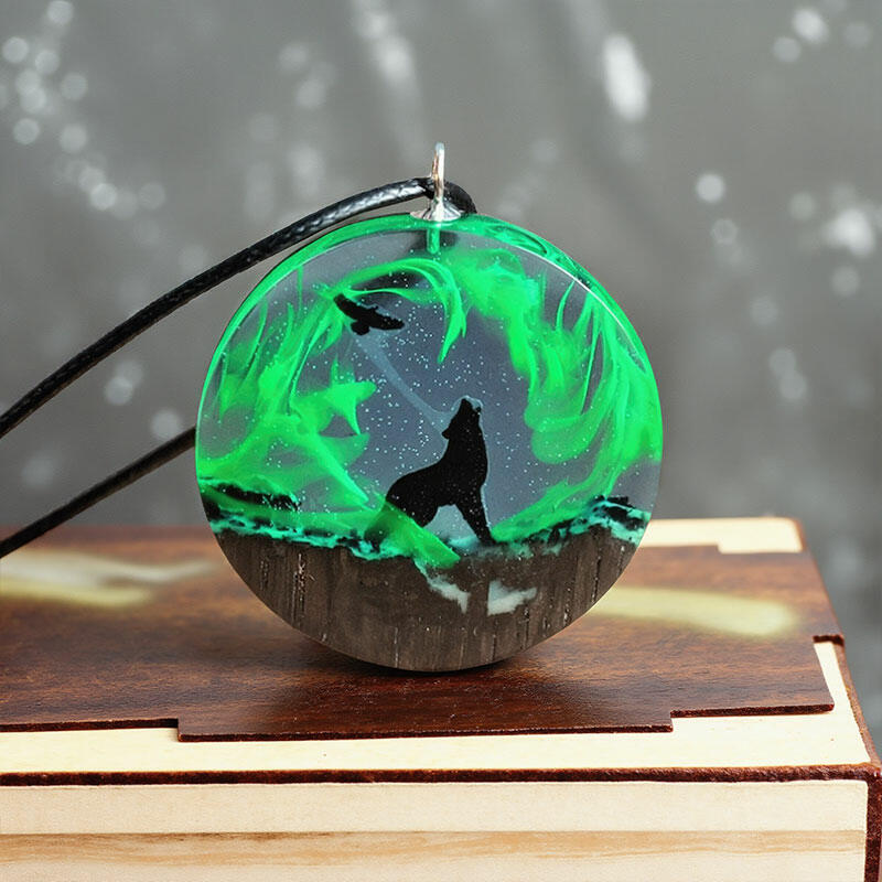 Reslol Mysterious Wolf & Aurora-Inspired Eco-Friendly Resin Necklace