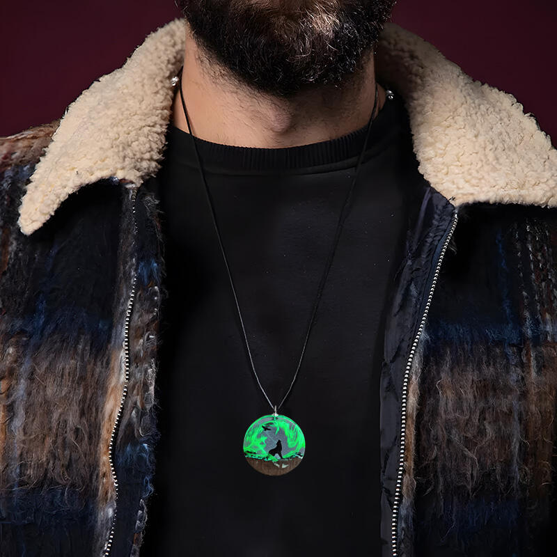 This necklace is not just an accessory, it's a portal to a world of wonder. The combination of the fierce wolf and the enchanting aurora in the resin creates a breathtaking scene. The wolf, a symbol of strength and freedom, is vividly depicted, while the aurora adds a touch of ethereal beauty.