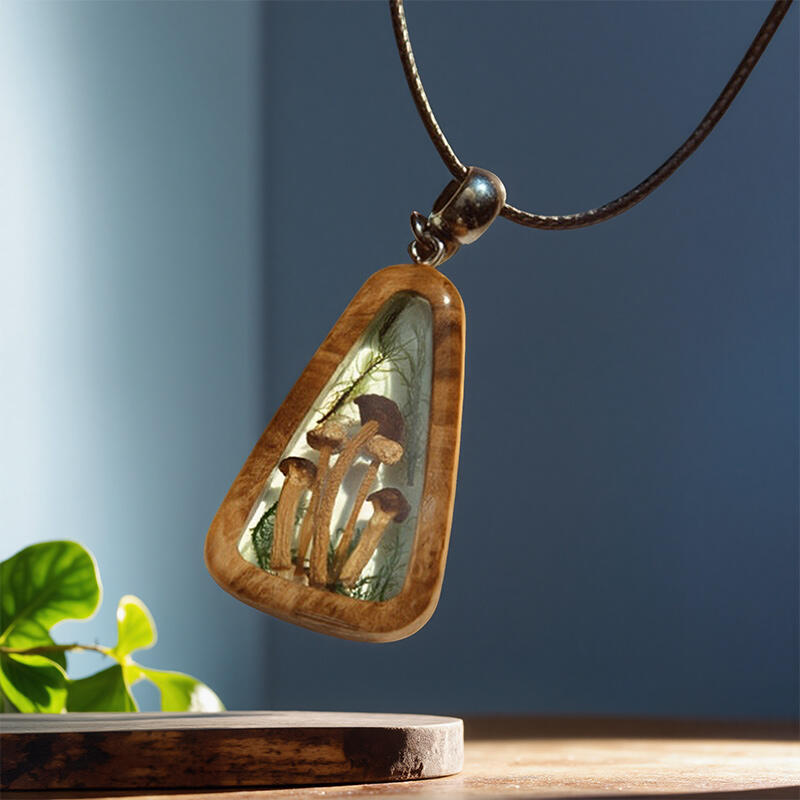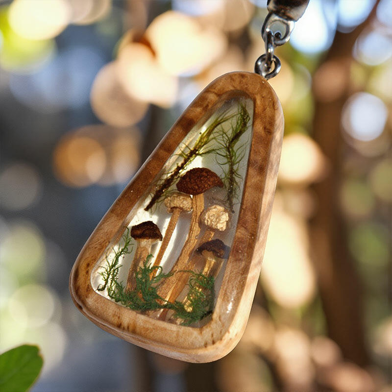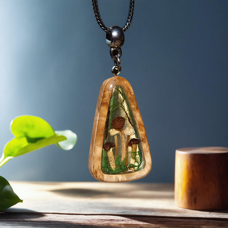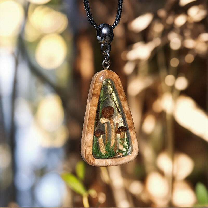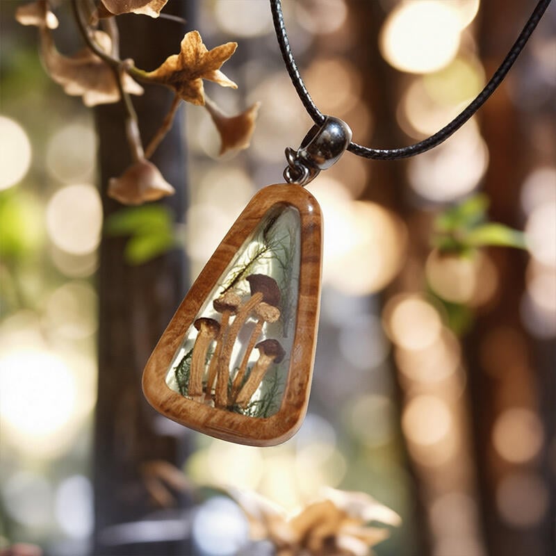 Featuring real natural mushrooms embedded in high-quality epoxy resin, this necklace is a testament to the beauty of nature's creations. The resin not only preserves the delicate details of the mushrooms but also adds a sleek, modern touch. It's a harmonious blend of the organic and the contemporary.