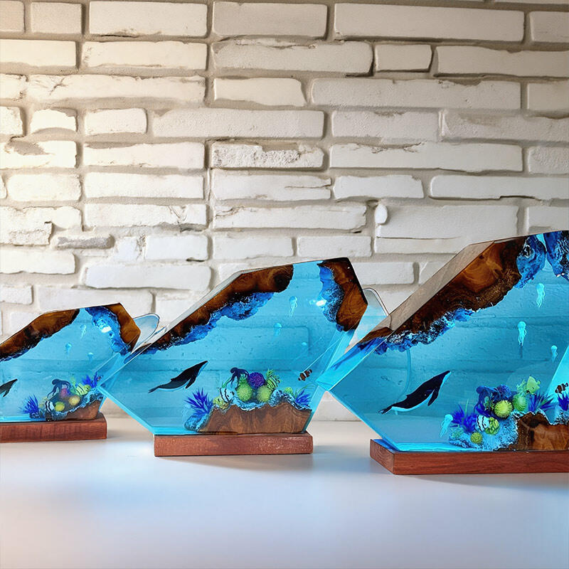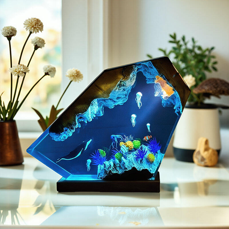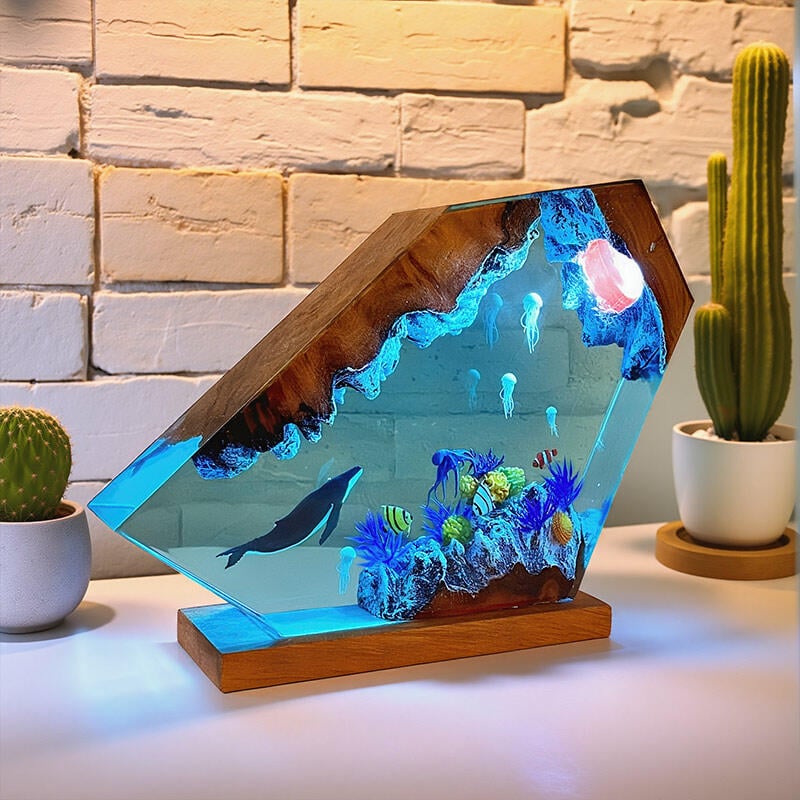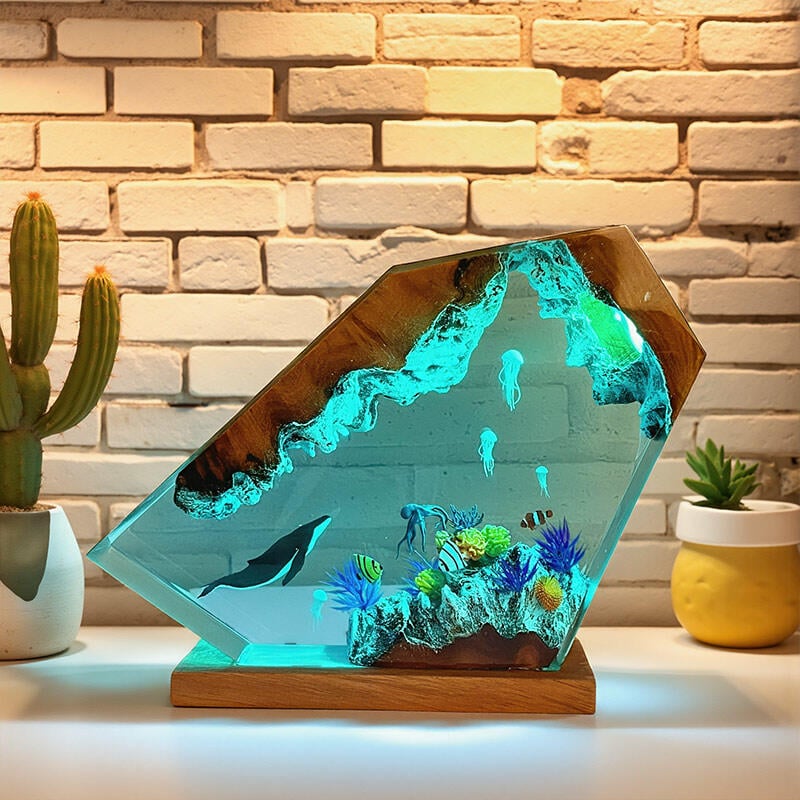 Elevate your decor with Reslol’s Oceanic Resin & Wood Lamp—a celebration of marine life and artisanal craftsmanship. Hand-poured resin captures the magic of the sea, showcasing lifelike humpback whales, delicate jellyfish, playful octopuses, and vibrant clownfish, all set against a natural wooden base.