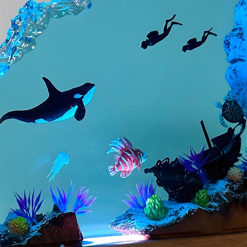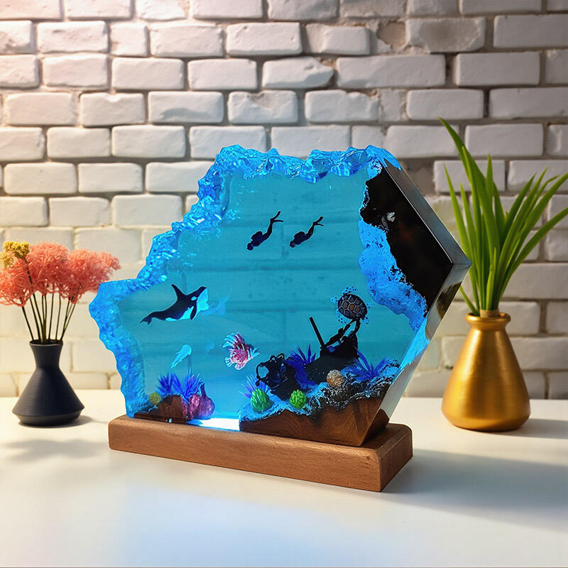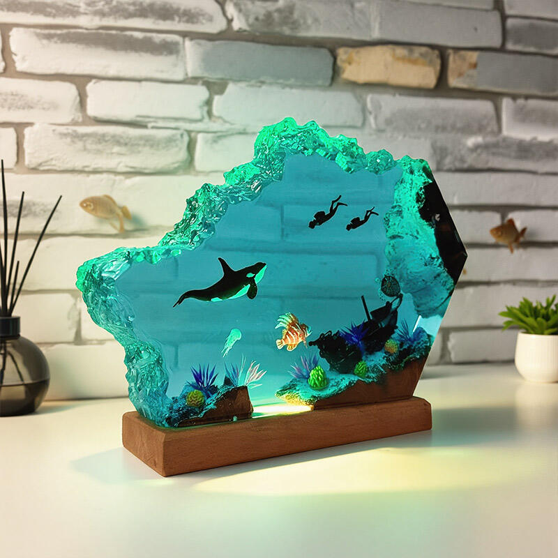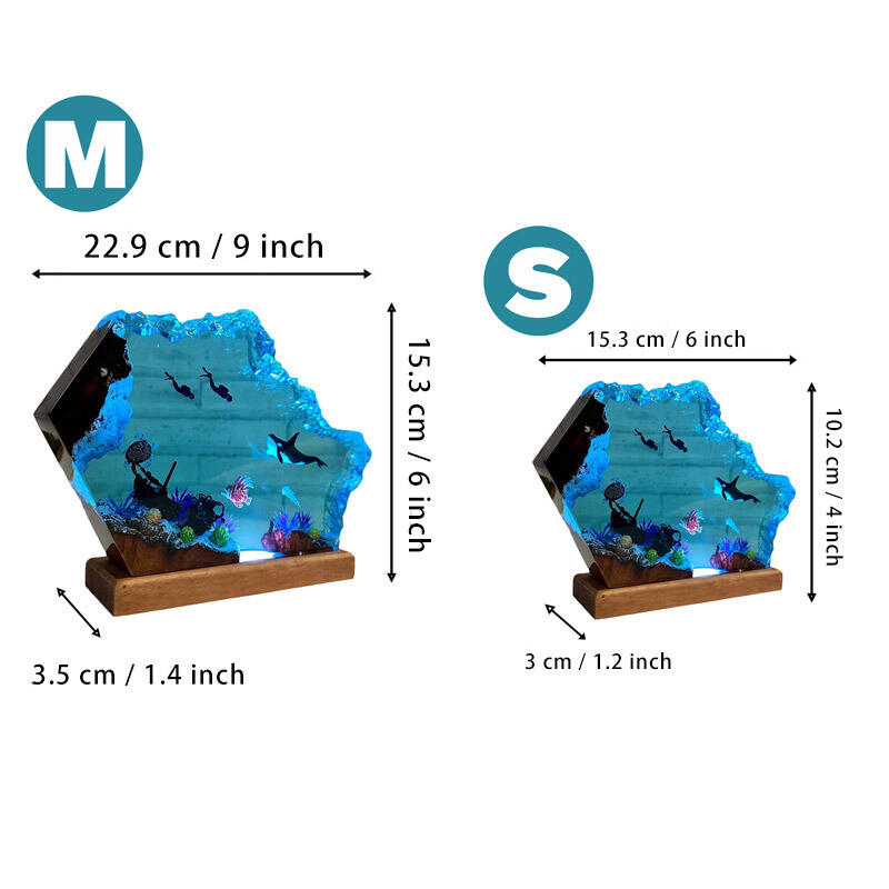Plunge into a world of underwater wonder with Reslol’s Handcrafted Ocean Resin Lamp—a fusion of artistry and functionality. Meticulously crafted from premium epoxy resin and natural wood, this lamp captures a dynamic marine scene: a majestic orca glides alongside a curious diver, while a gentle sea turtle drifts in the transparent, crystal-clear resin. The lifelike details and 3D depth create an immersive visual experience, as if peering into the ocean’s depths.