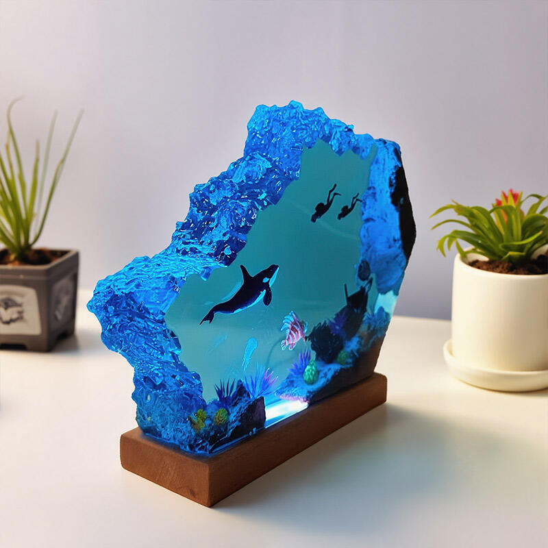 Vibrant Ocean Resin Lamp | Reslol Artisan Orca & Diver Artwork