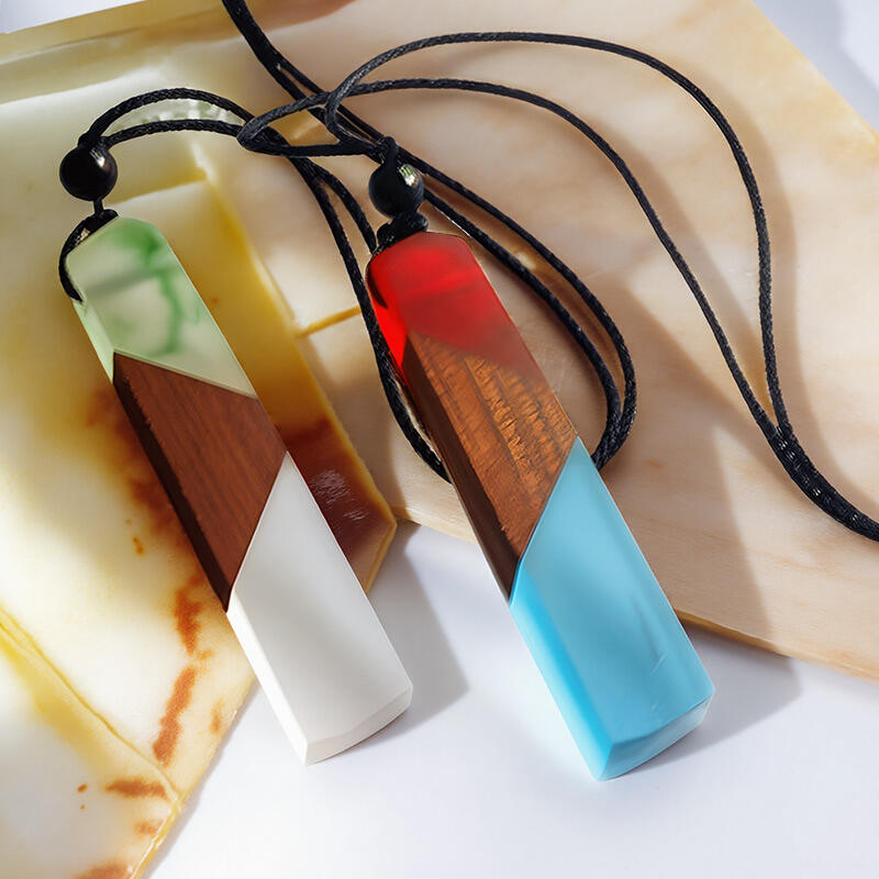 Reslol Sophisticated Handmade Resin & Wood Colorful Simple Necklace