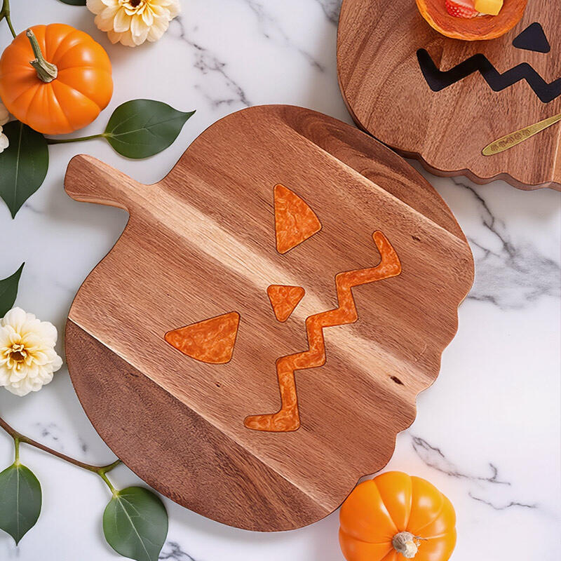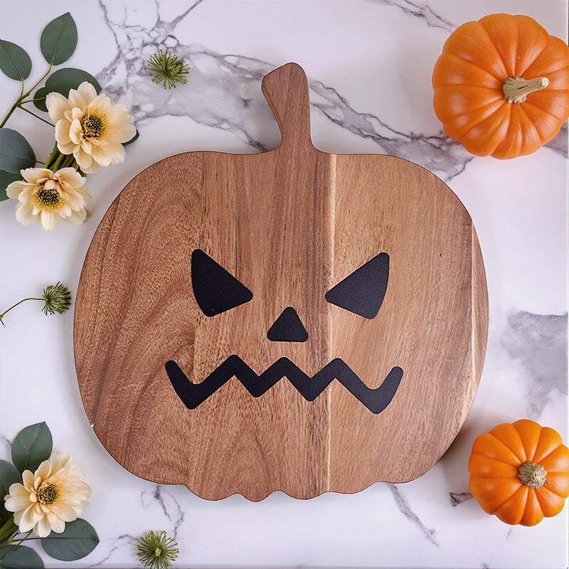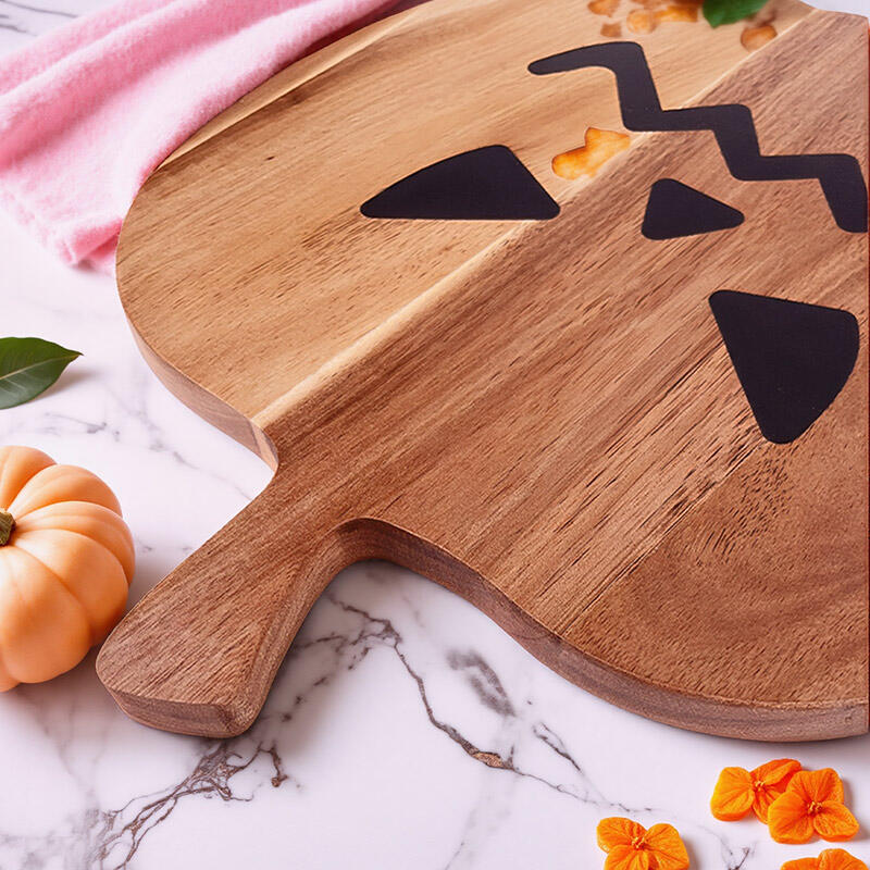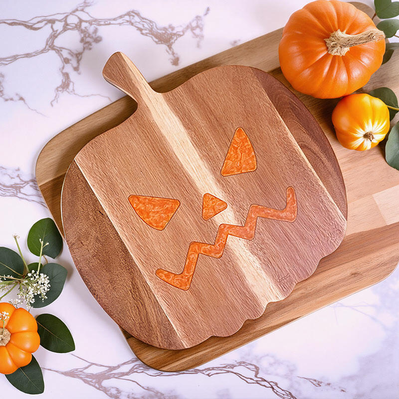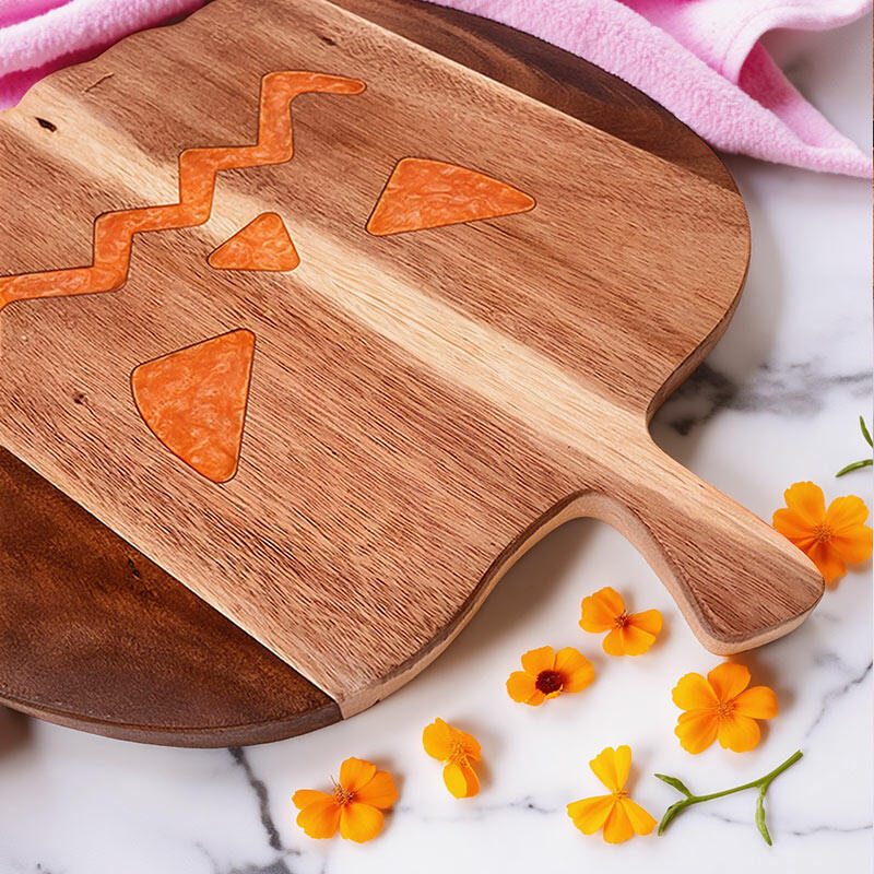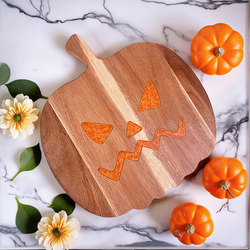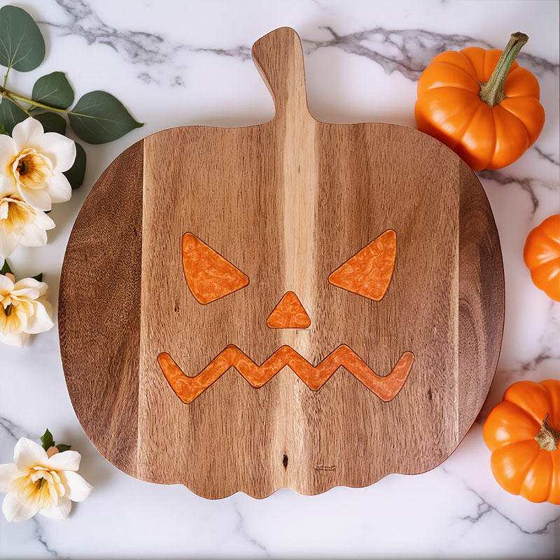 The pumpkin design on this board is a real show-stopper. It's a vivid representation of the Halloween spirit, with every detail carefully crafted using resin on the wood. The unique shape and color combination make it a standout piece in any kitchen.