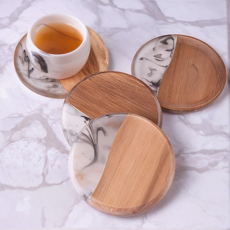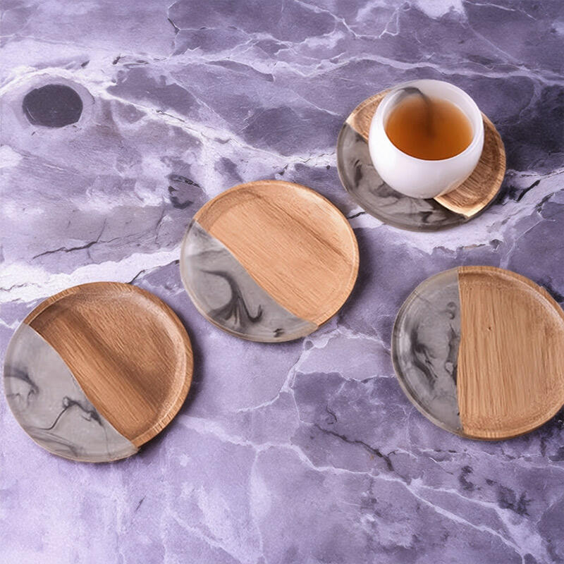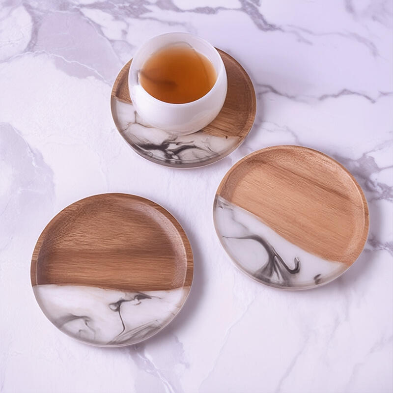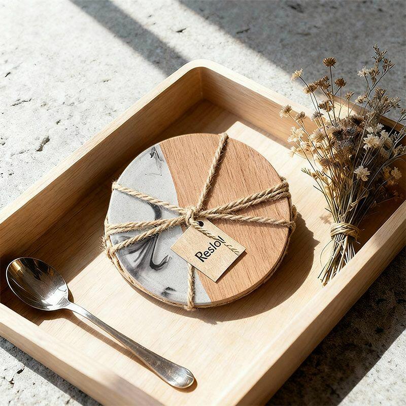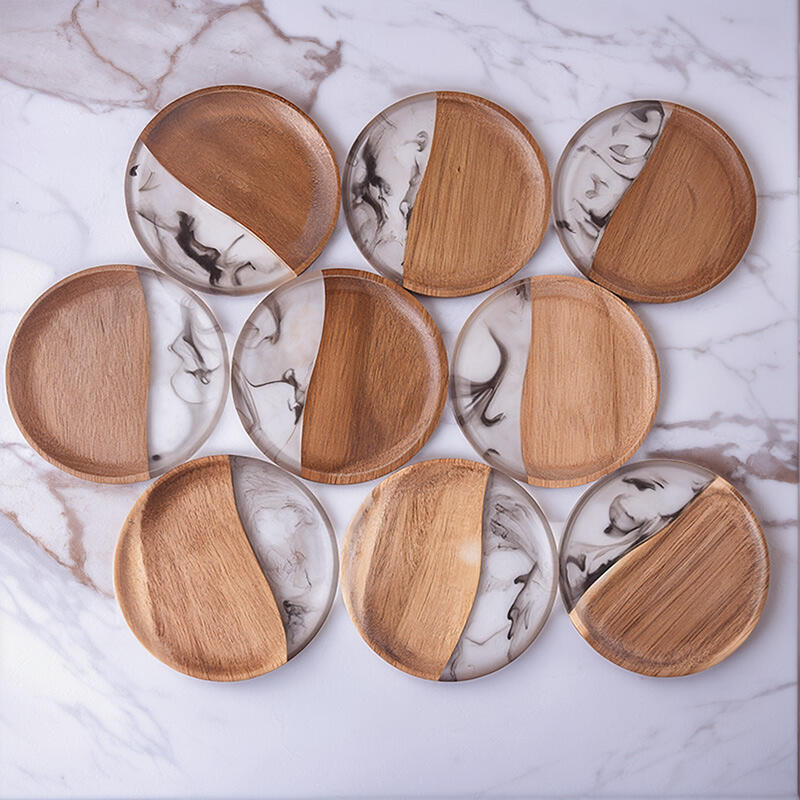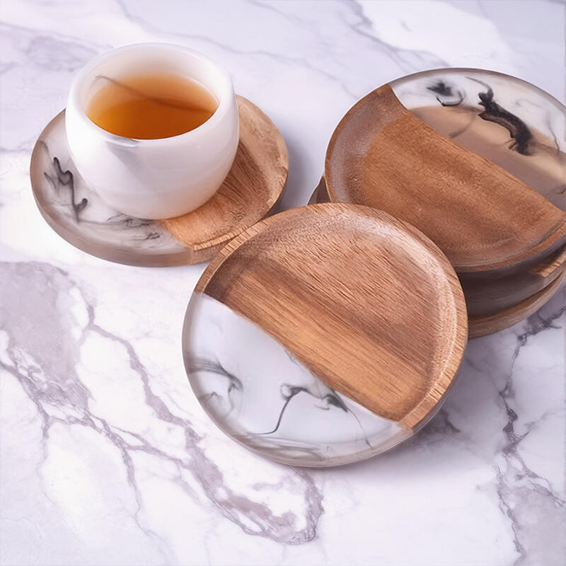 Hey, fans of unique and elegant items! Discover our Reslol Stylish Round Acacia & Epoxy Ink-inspired Coasters.