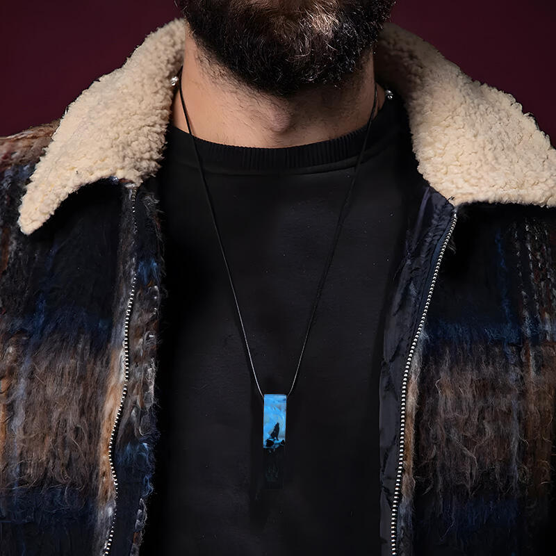 These necklaces are a true celebration of the wolf's allure. The design features elements like the howling wolf and engraved wolf footprints, bringing the wild spirit right to your neck. Crafted with recycled resin and other quality materials, they not only look great but also contribute to environmental conservation.