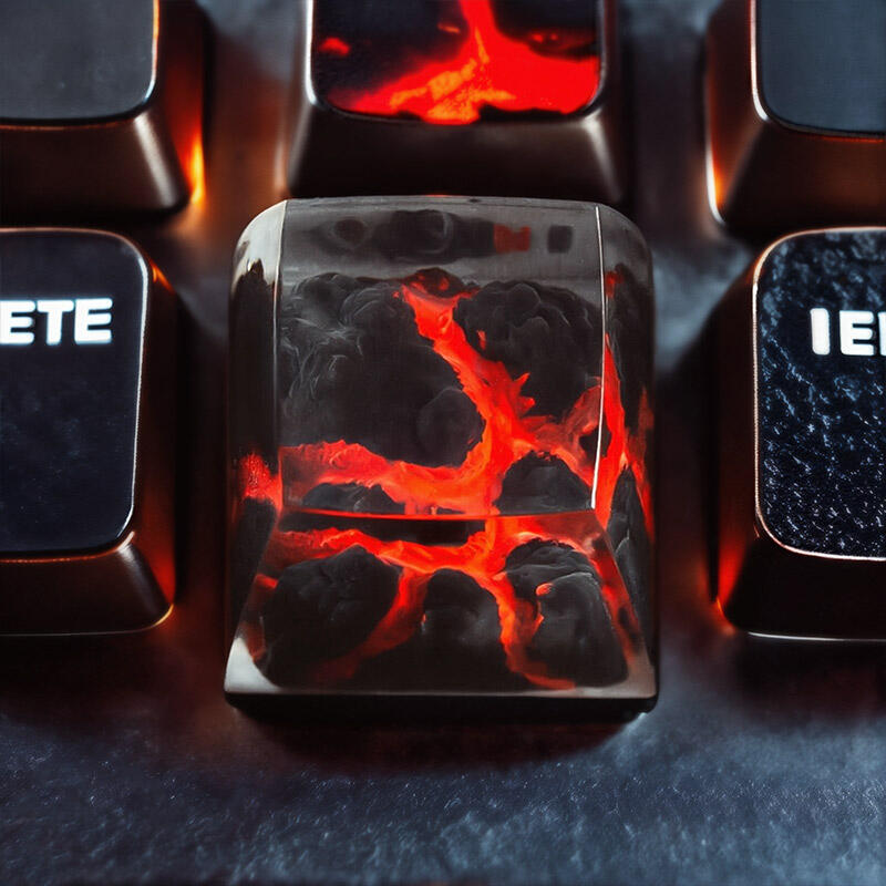 Each keycap is carefully crafted with attention to detail. The resin used gives them a vibrant and eye-catching appearance, capturing the essence of dynamic natural phenomena. The unique design elements, inspired by geological features, are brought to life on these keycaps.
