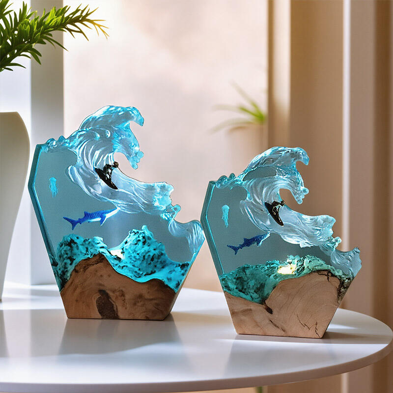 Dear ocean lovers! Here comes our Reslol ocean-themed night lamp, a perfect blend of art and functionality. Crafted from eco-friendly epoxy and recycled wood, it embodies the spirit of environmental protection. The design features majestic whales and gentle waves, bringing the mystery and beauty of the ocean right into your room. Whether you're a surfer longing for the sea, an art collector seeking unique pieces, or just wanting to add a touch of ocean charm to your space, this night lamp is the ideal choice. It also makes a wonderful gift for your family and friends.