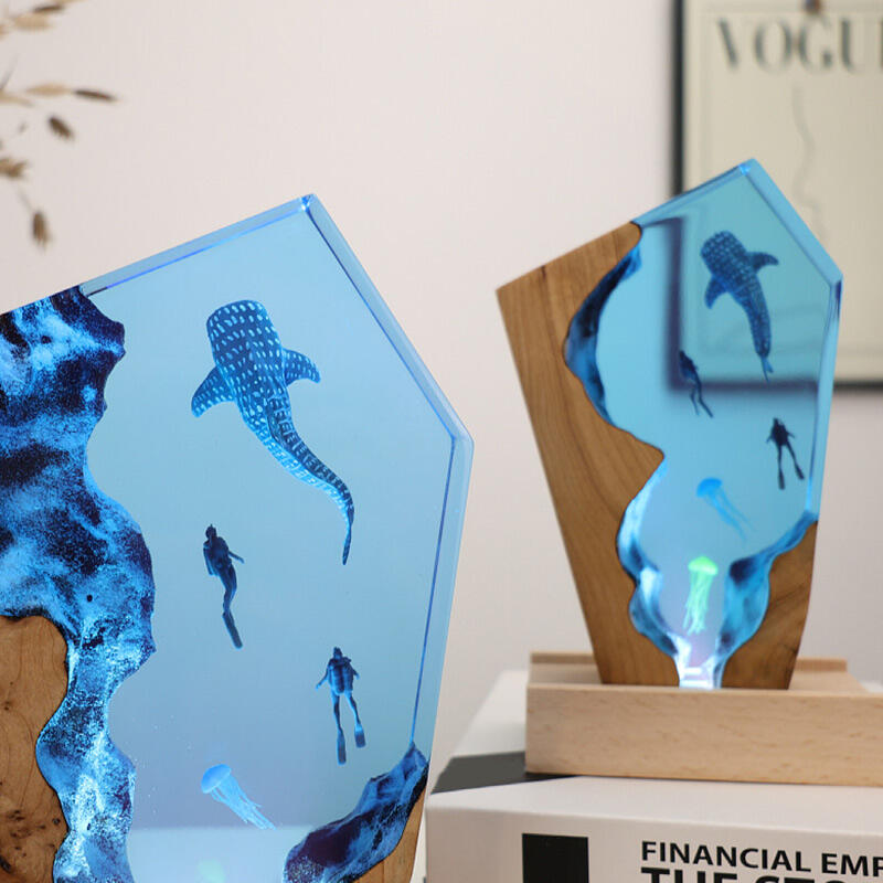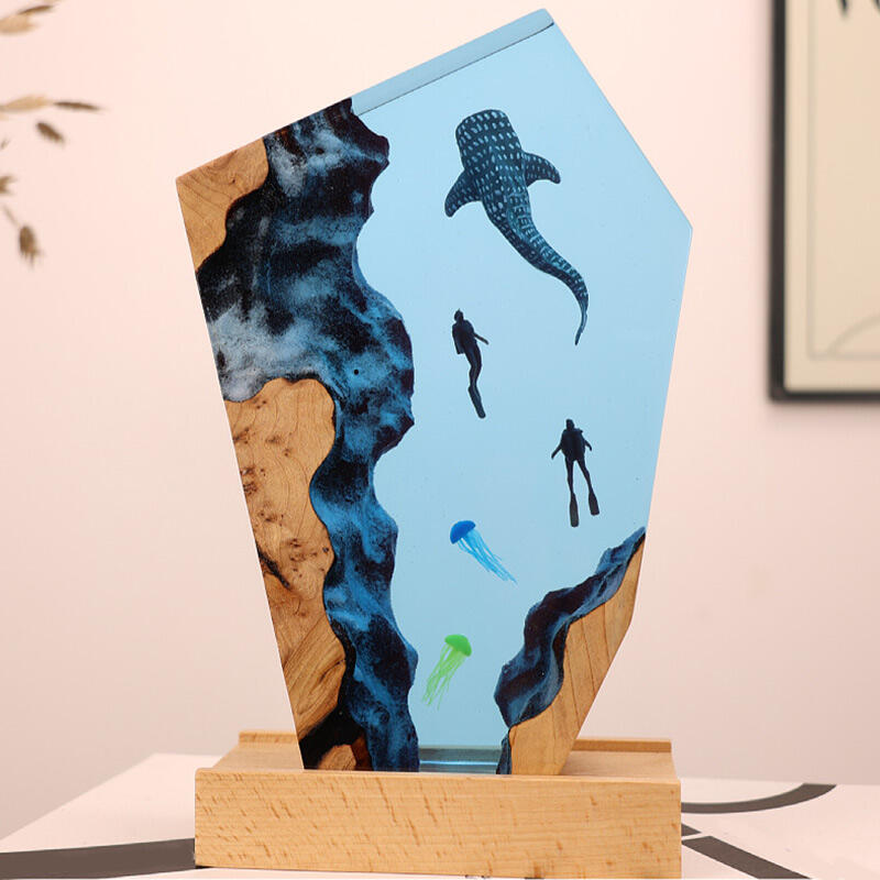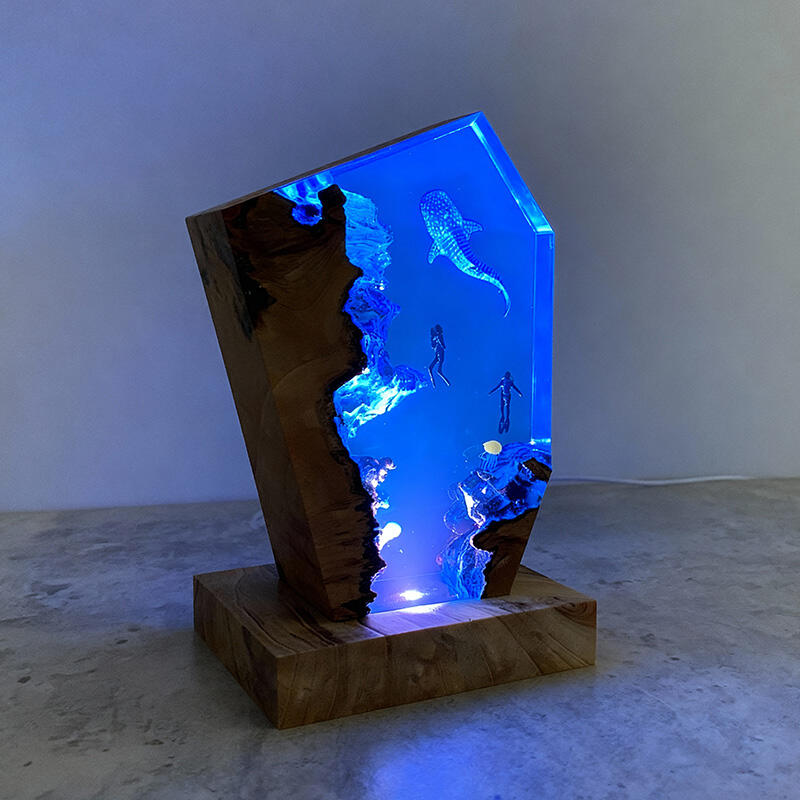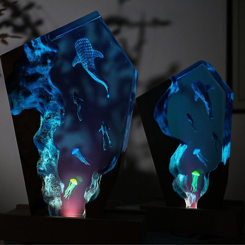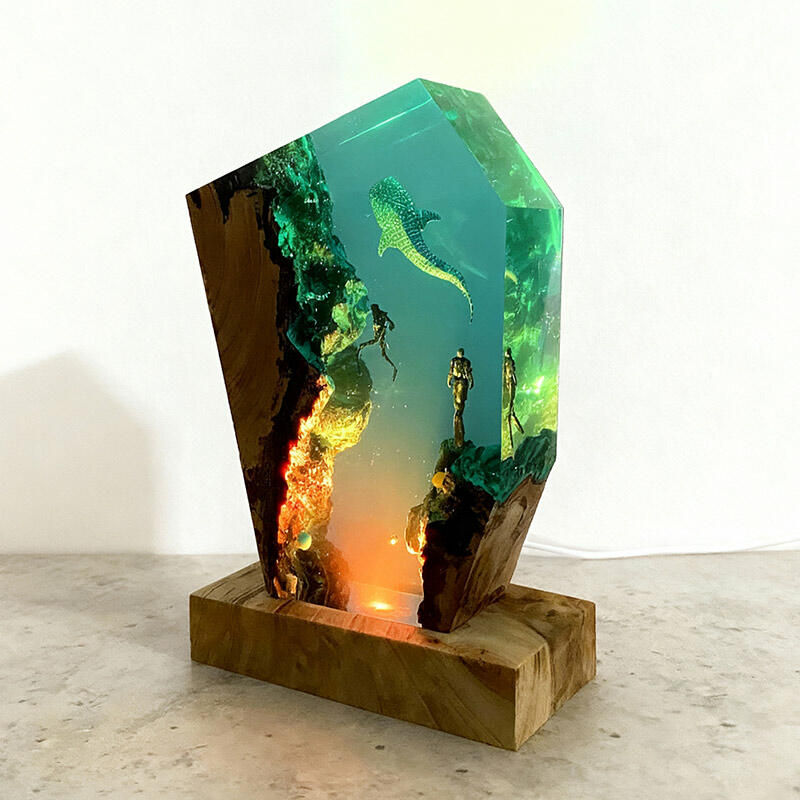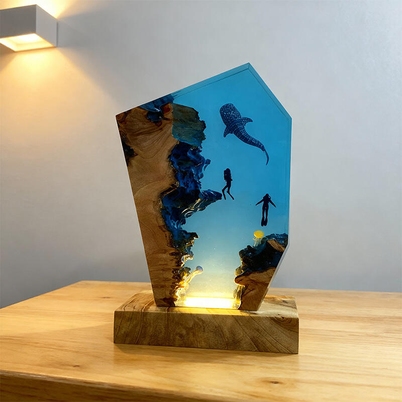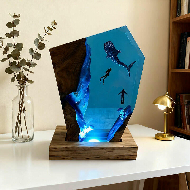 Dear ocean enthusiasts, be they family, friends, or dedicated environmental advocates! Our Reslol epoxy ocean night lamp is here to amaze you. This isn't just an ordinary lamp; it's a portal to the mesmerizing underwater world. The detailed depictions of majestic whale sharks, graceful jellyfish, and adventurous divers within the resin bring the magic of the ocean to life right in your room.