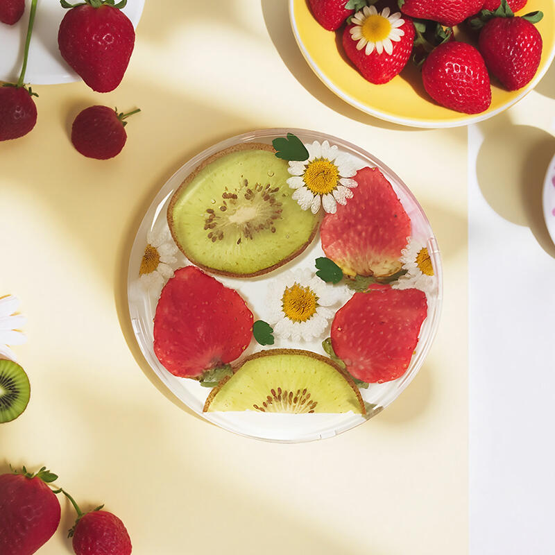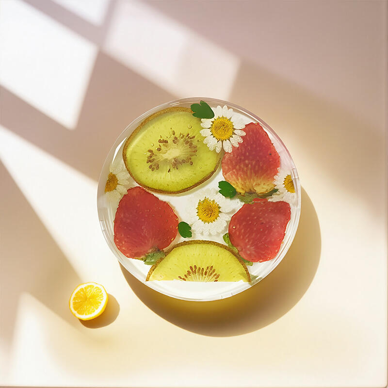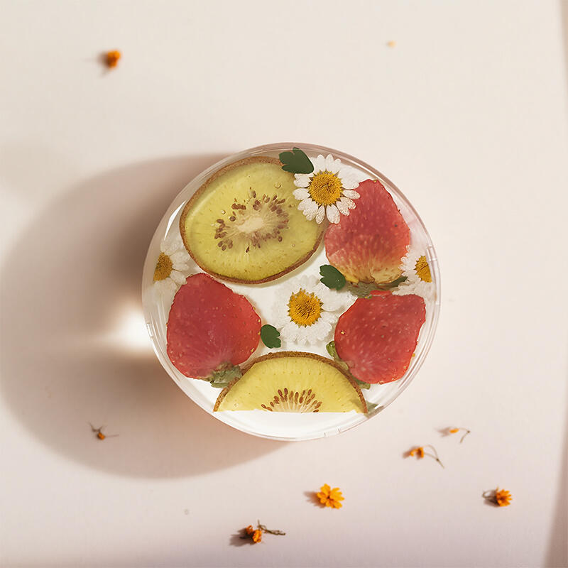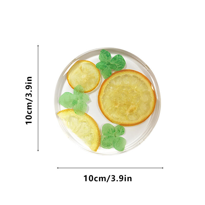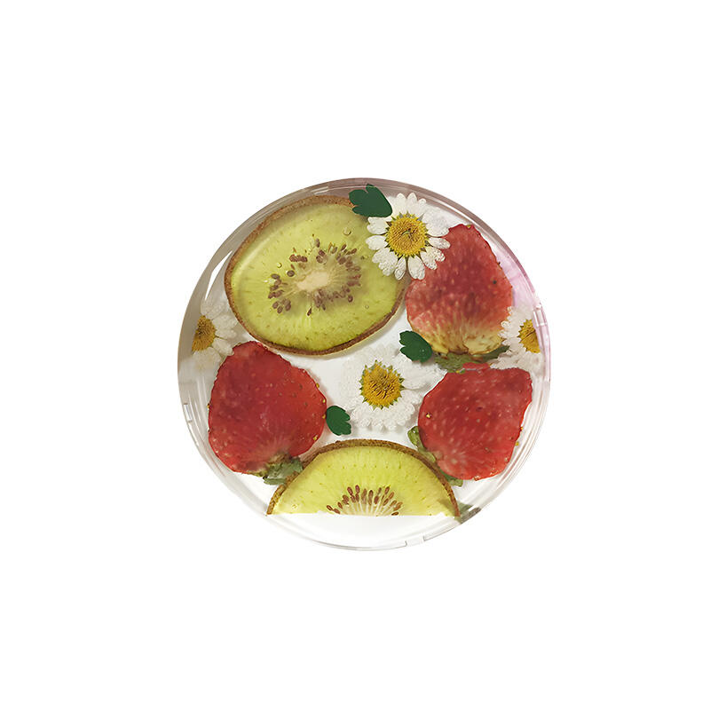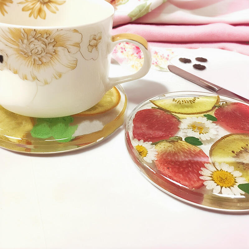 Each coaster is a handcrafted masterpiece, with real fruits carefully encased in clear resin. The result is a visually stunning creation that brings the vibrant colors and textures of the fruit world right to your fingertips. From the juicy allure of a ripe peach to the zesty charm of a lemon slice, every coaster tells a unique story of nature's beauty.