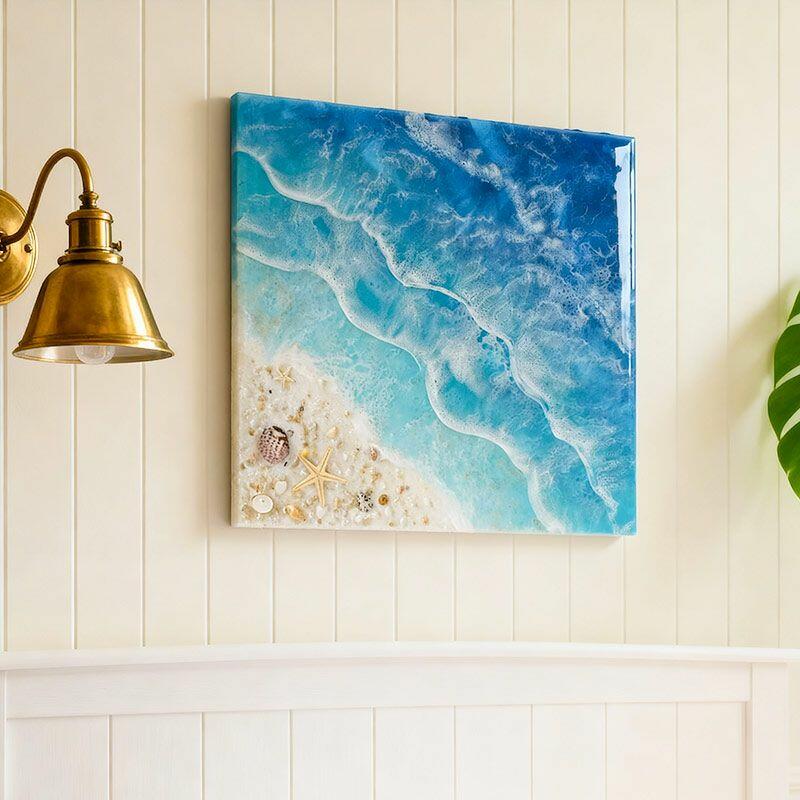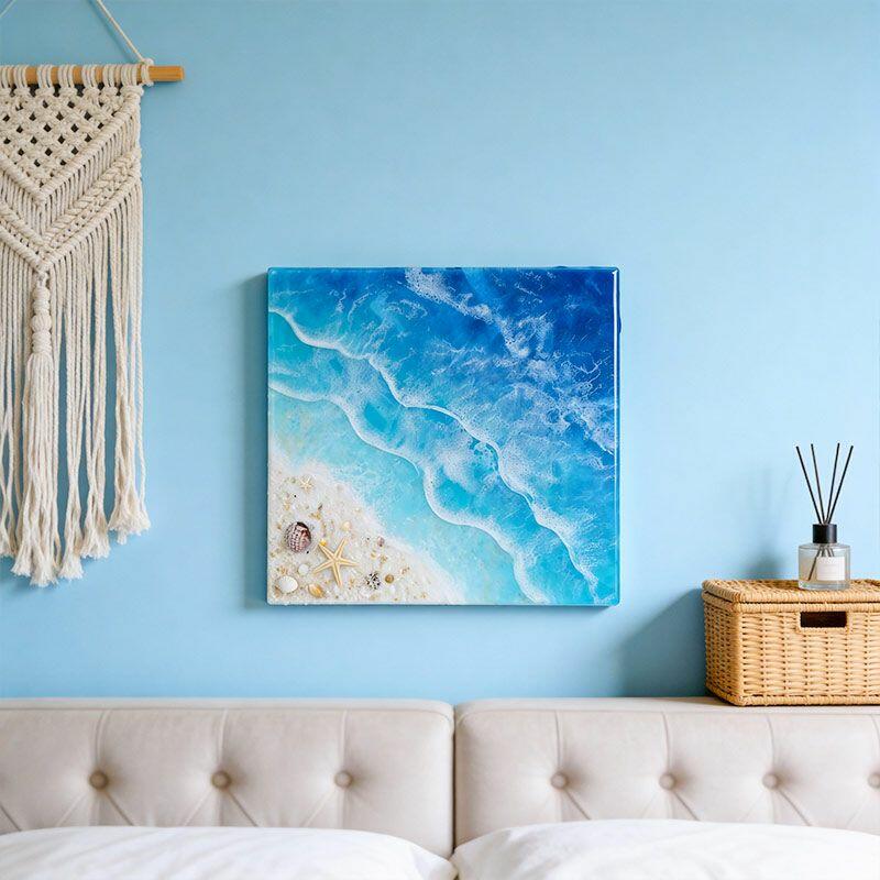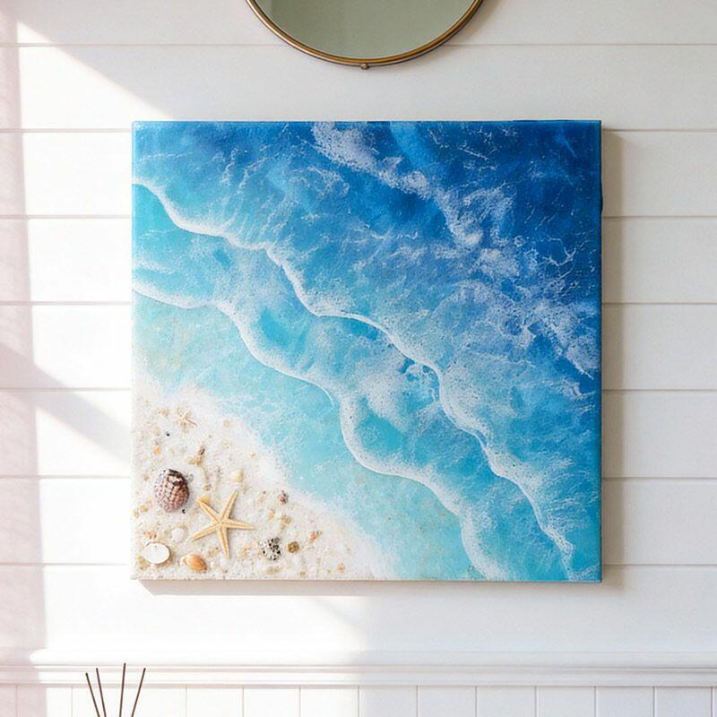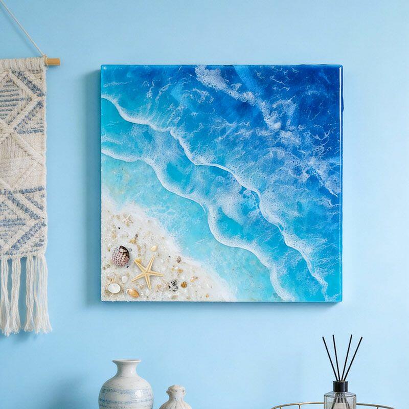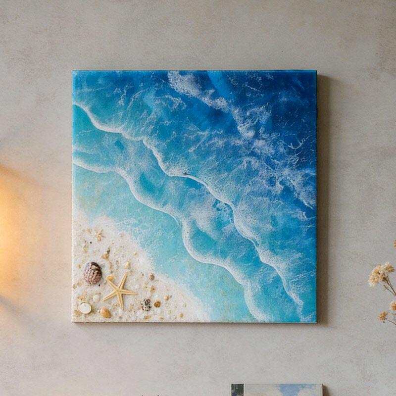 Perfect for living rooms, home offices, or coastal-themed bedrooms, this square wall art adds a fresh, oceanic vibe to any space—ideal as a thoughtful housewarming gift for beach lovers. Note: As each piece is handmade, slight variations in color, wave pattern, or embedded elements may occur, making your artwork truly one-of-a-kind. All designs are original, ensuring no infringement issues.