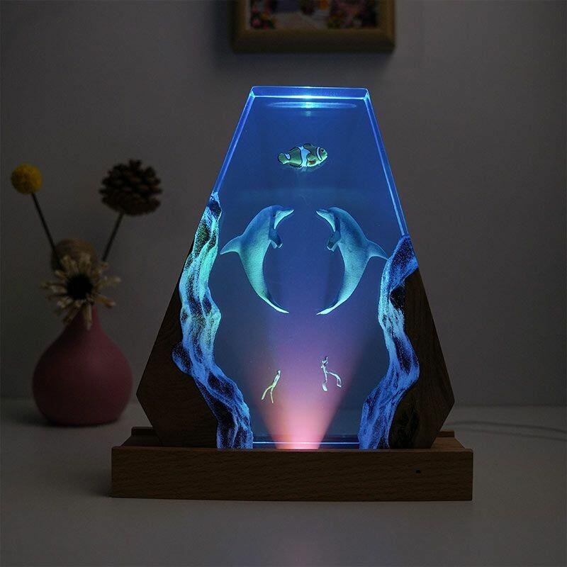 Romantic Dolphin & Diver Resin Lamp – Reslol Handcrafted Ocean Art Decor Gift