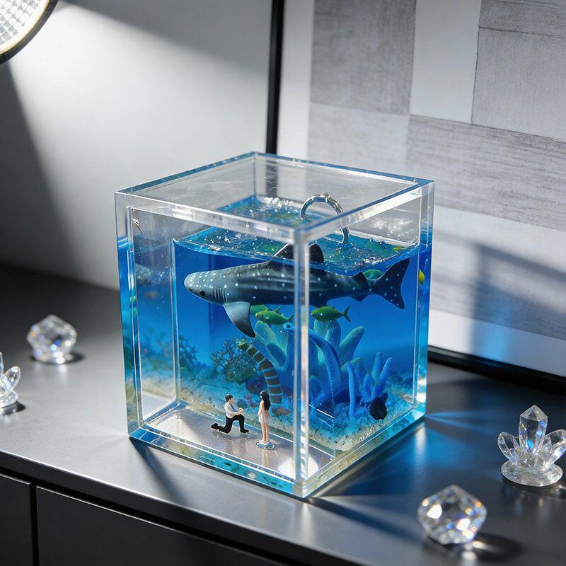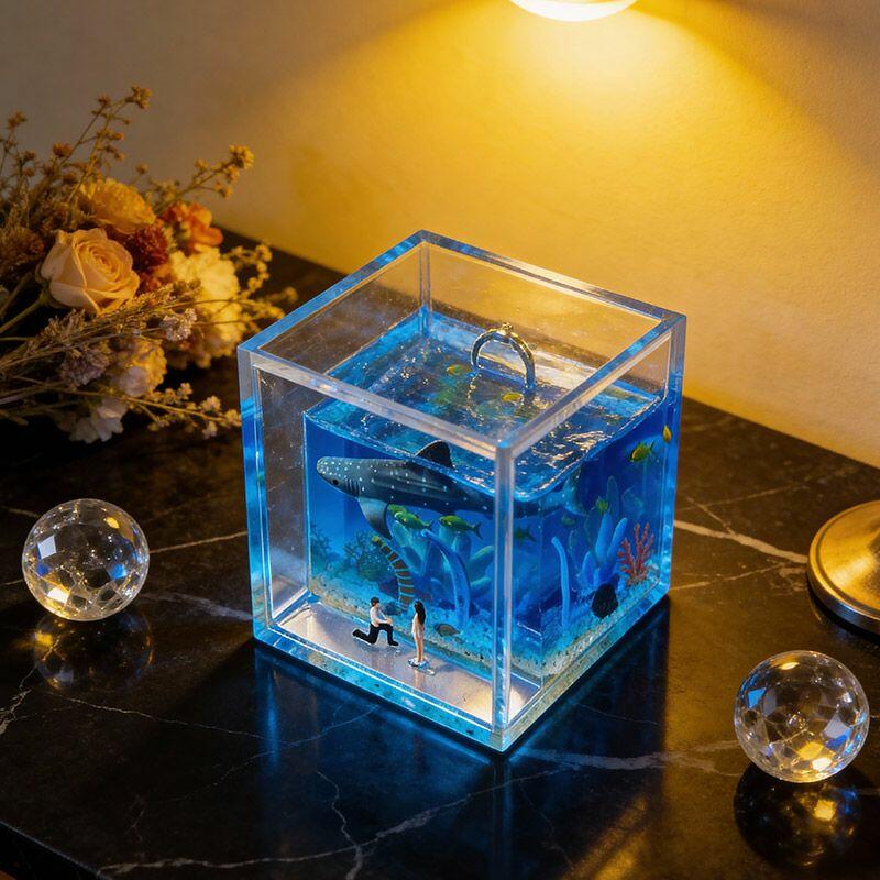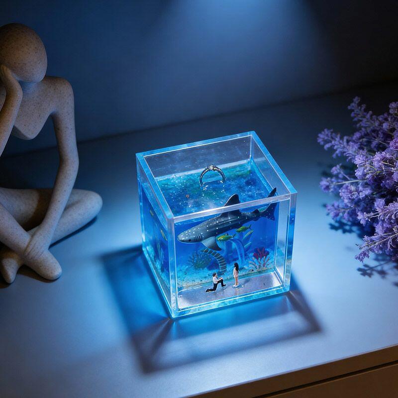 Every piece is handcrafted with dedication, showcasing intricate ocean elements that evoke calm and romance—perfect for capturing the essence of your special proposal. The transparent acrylic frame highlights the detailed resin art, making it not just a ring box, but a decorative keepsake to cherish forever.