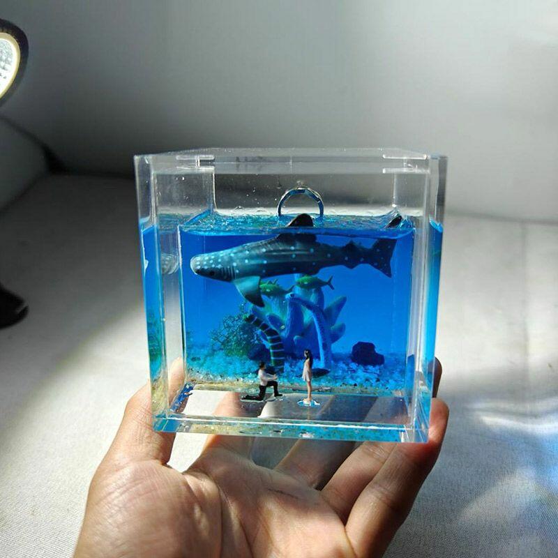 Romantic Ocean Scene Proposal Resin Ring Box with Acrylic Frame | Reslol Artisan Gift
