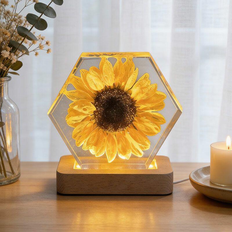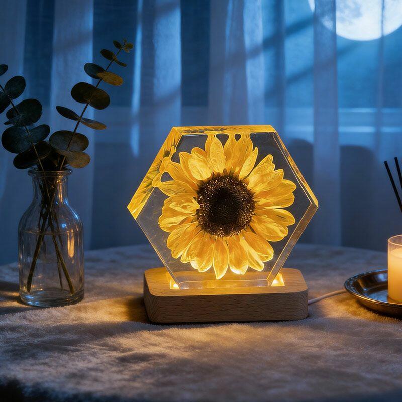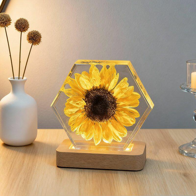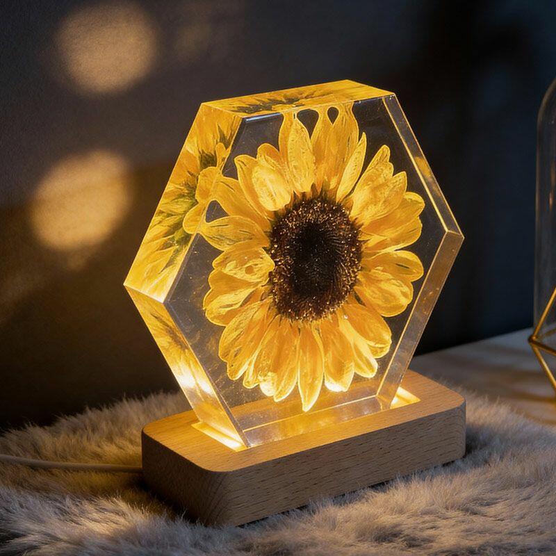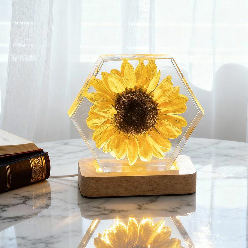 Illuminate your space with the delicate beauty of nature. The Reslol Sunflower Resin Hexagon Night Light is a stunning fusion of eco-friendly resin and preserved sunflowers, capturing the warmth and vibrancy of summer all year round.
