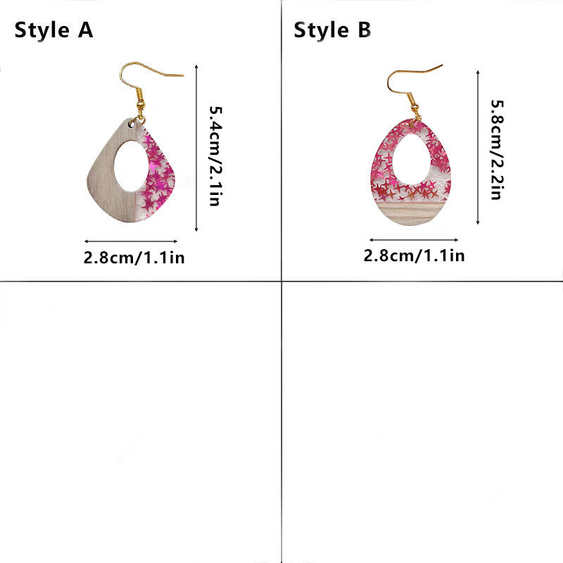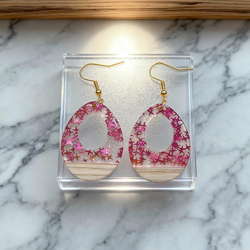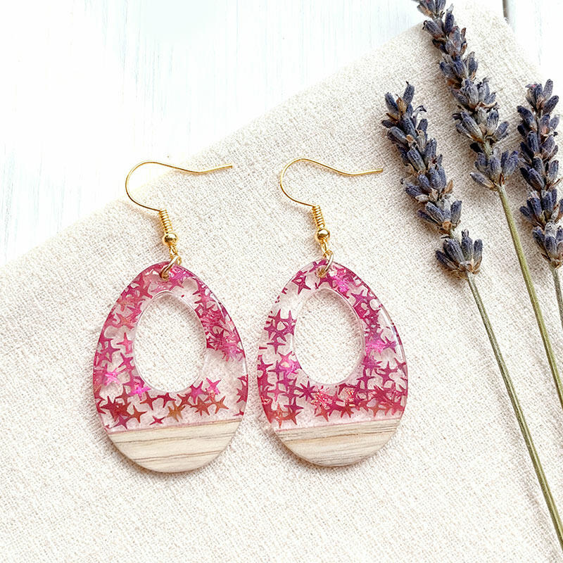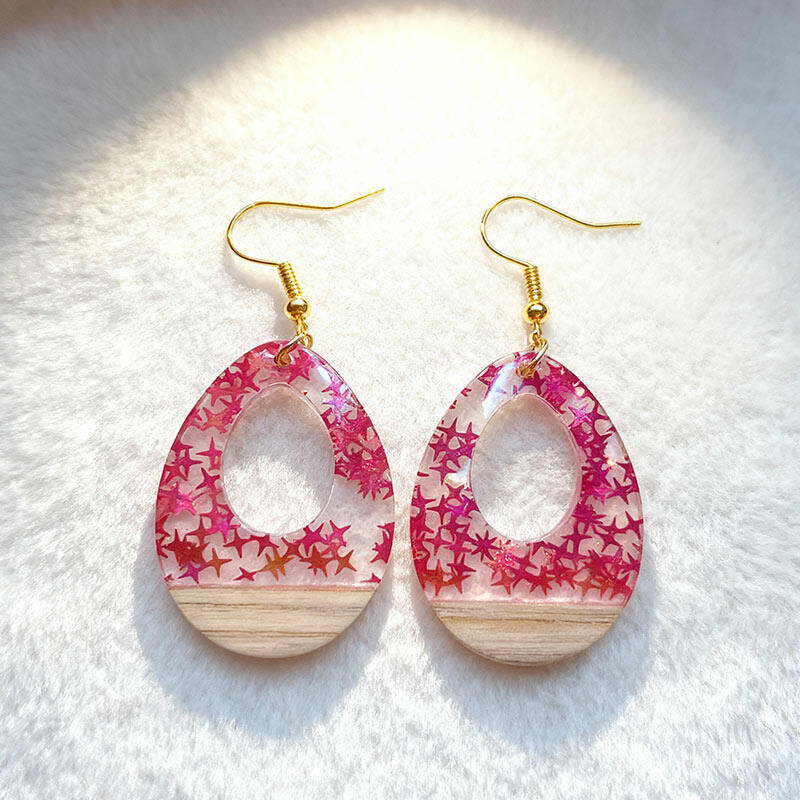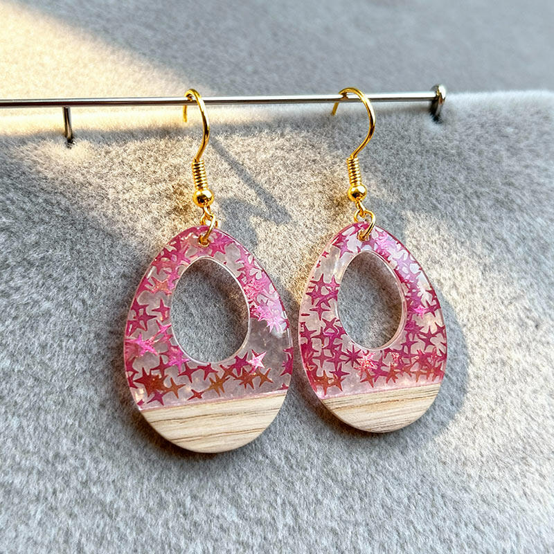 Rose Pink Star Geometric Wood Resin Earrings – Trendy Romantic Handmade Jewelry