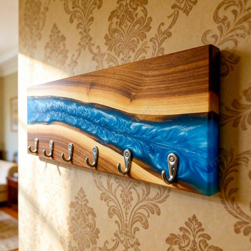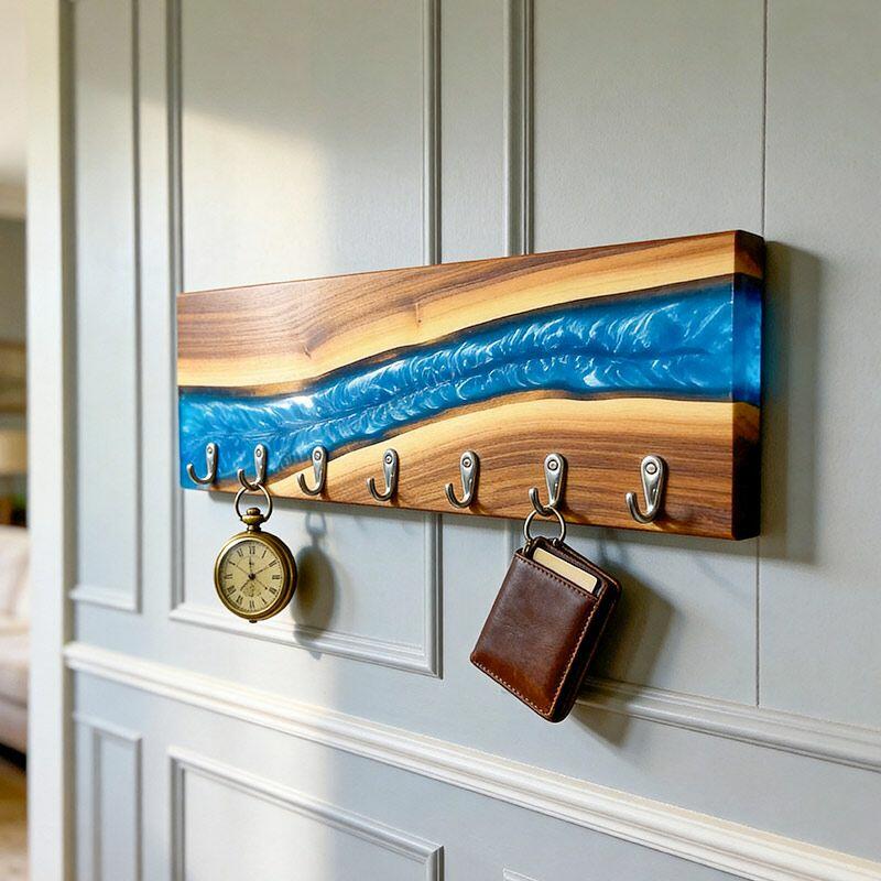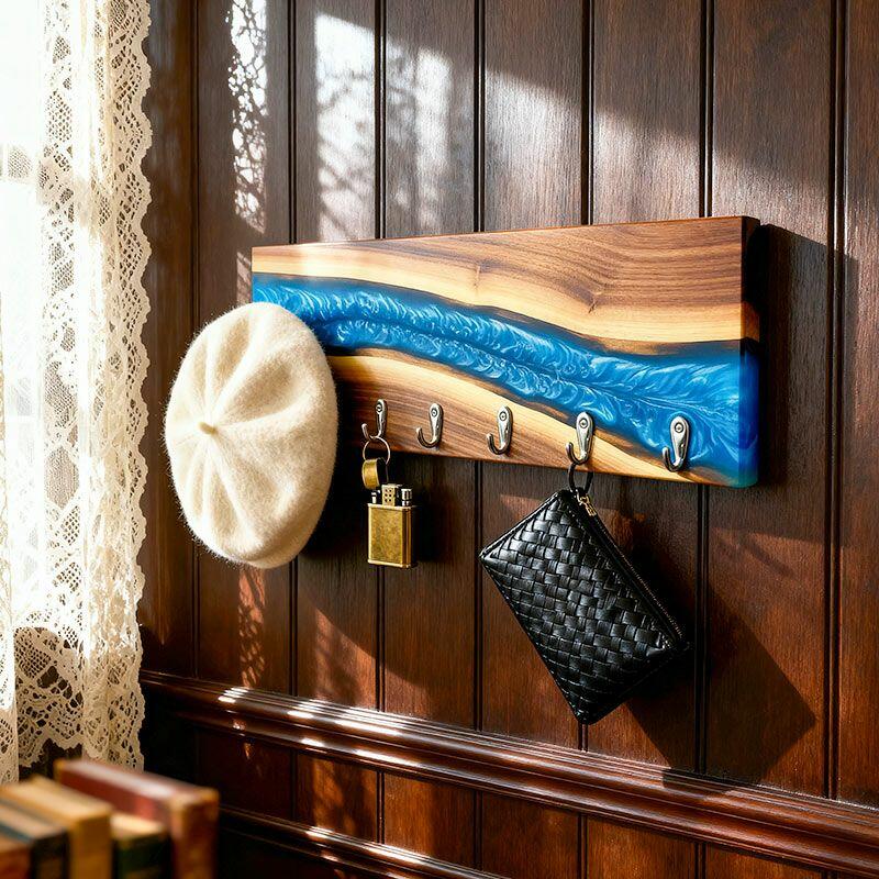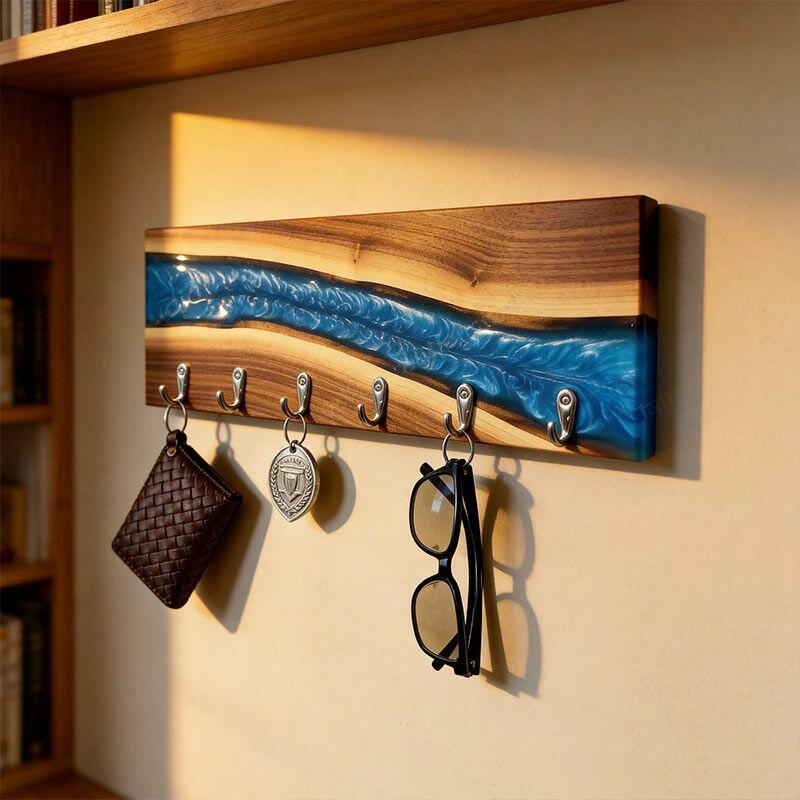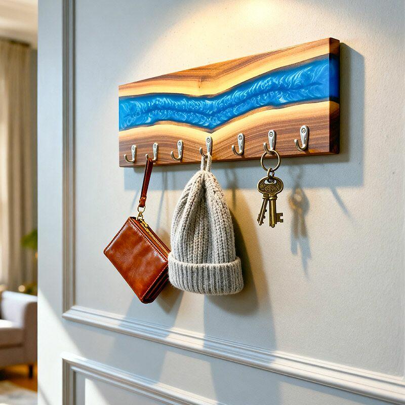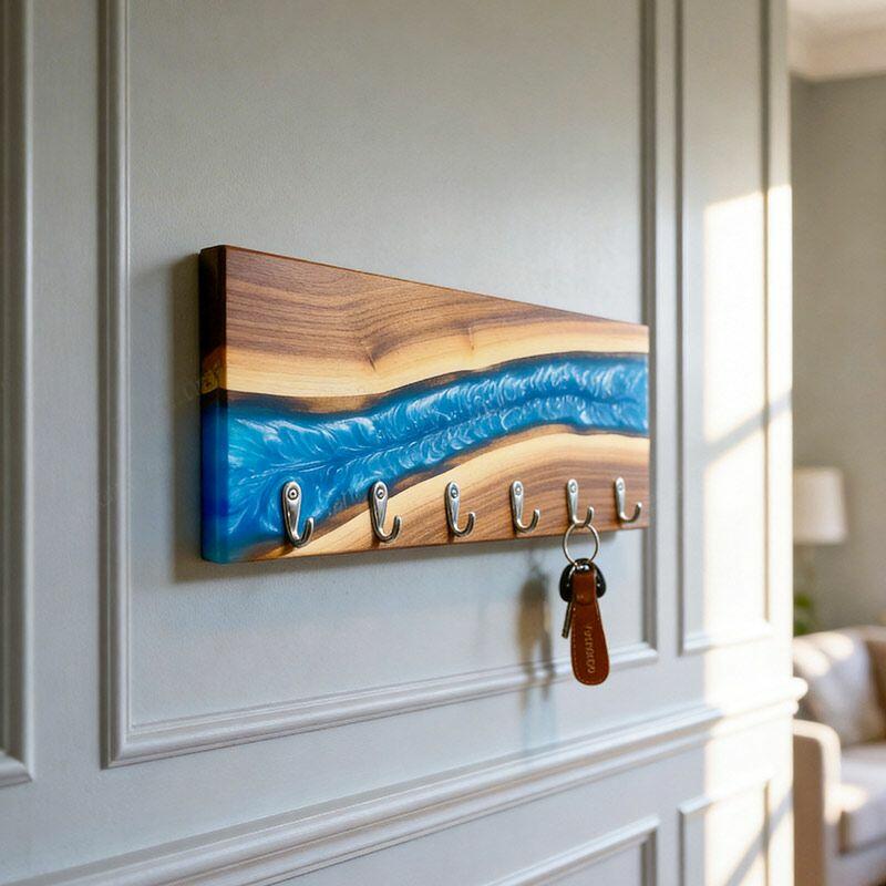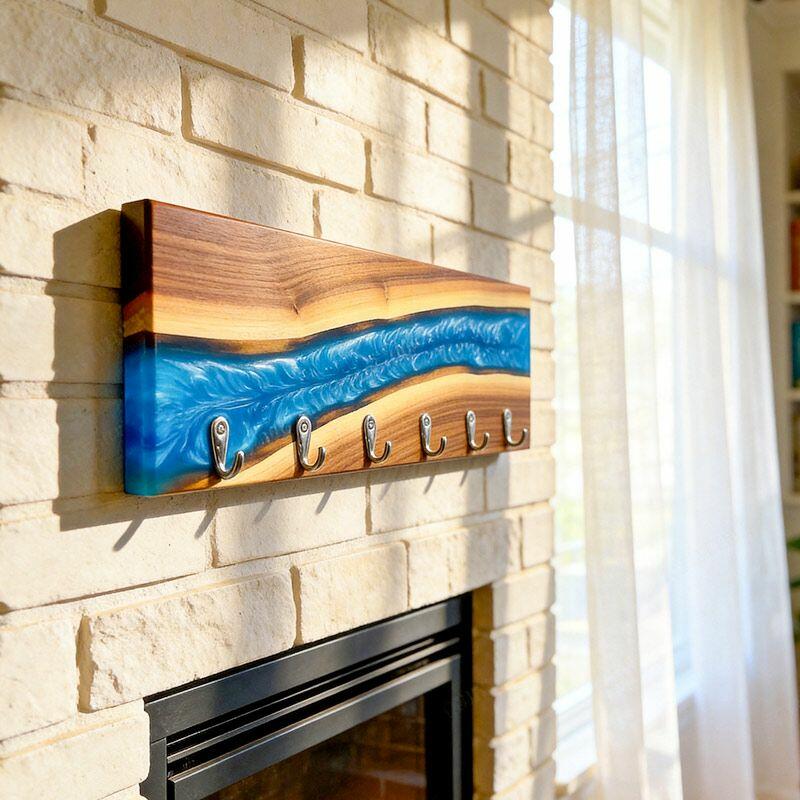 Reslol’s Blue Resin & Wood Key Holder is a fusion of artisanal craft and everyday utility, handcrafted to blend the natural warmth of solid wood with the dynamic allure of oceanic blue epoxy resin. The wood’s organic grain intertwines with the glossy blue resin, creating a "resin river" effect that mimics flowing water—turning a simple key organizer into a striking wall decor piece for entryways or entryway spaces.