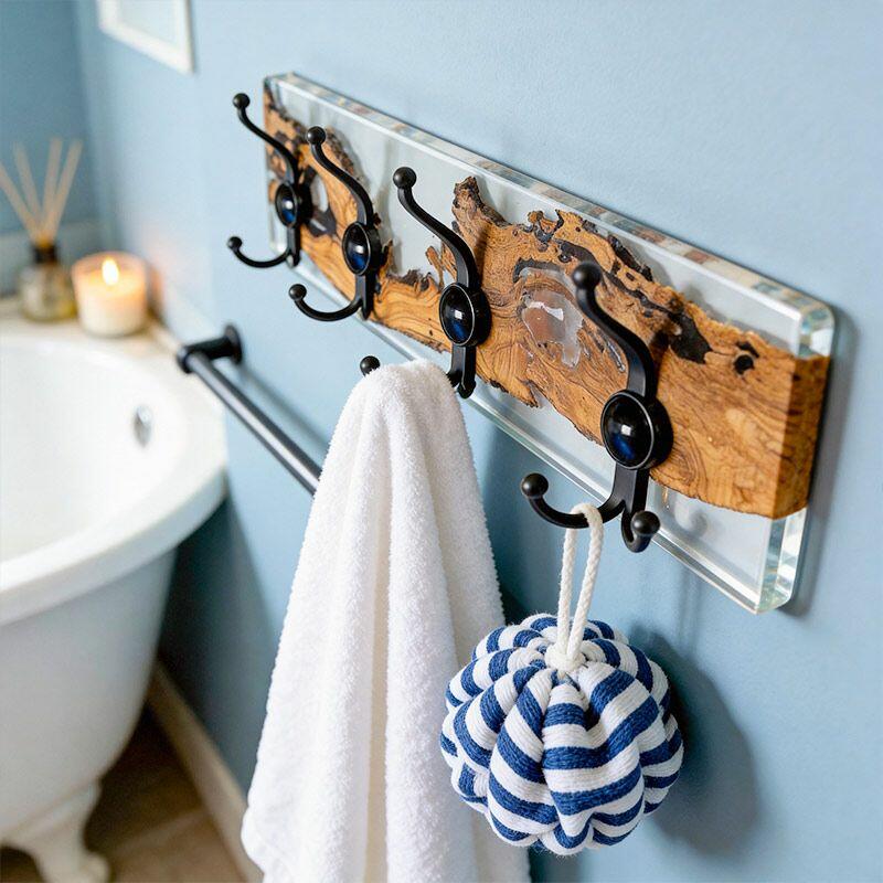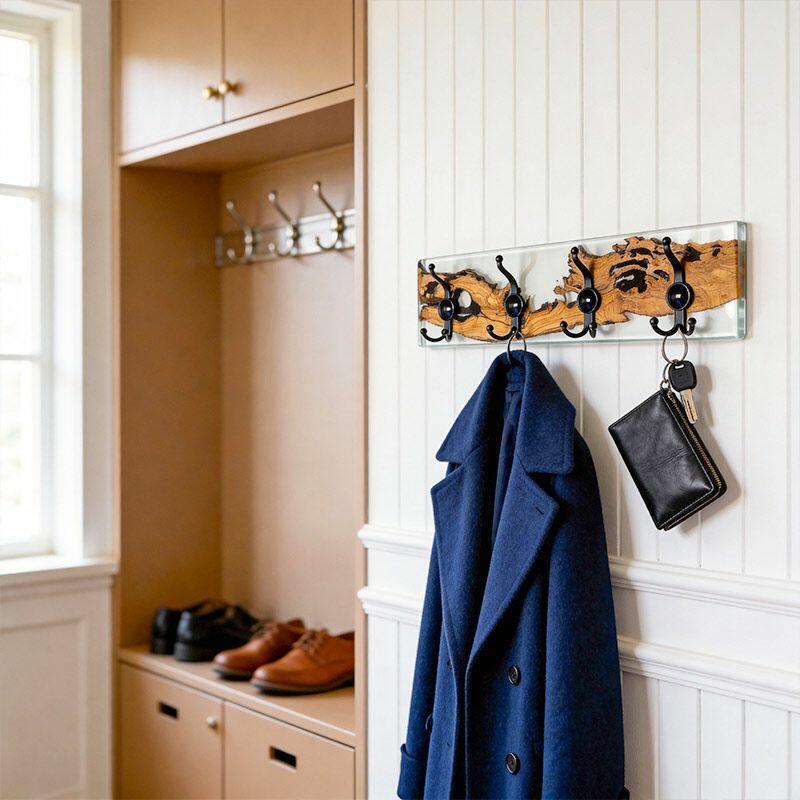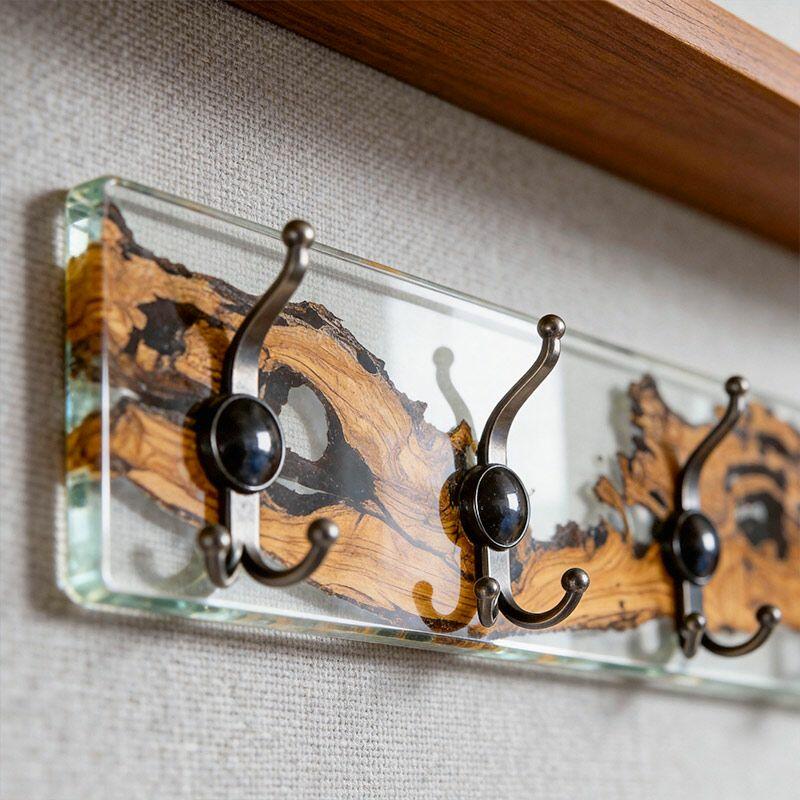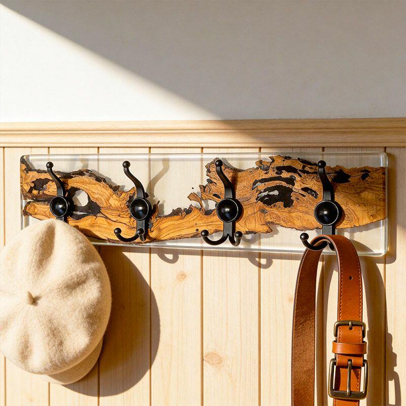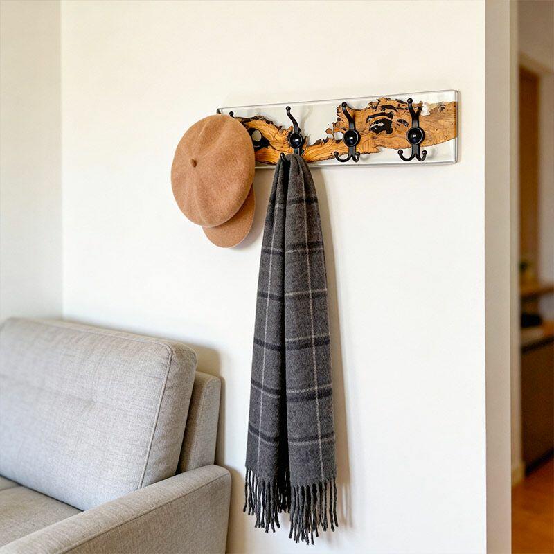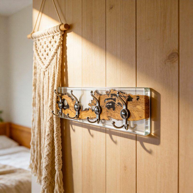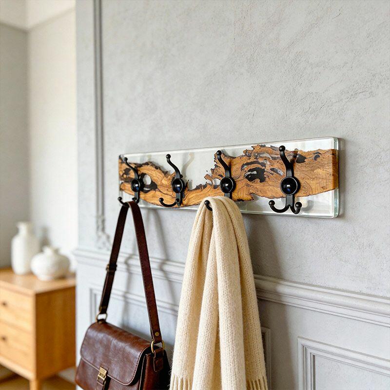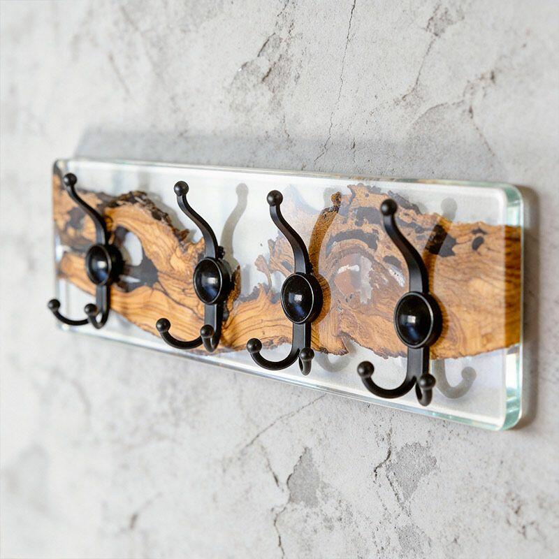 Rustic Clear Resin-Wood Wall Coat & Key Rack | Reslol Artisanal Housewarming Gift