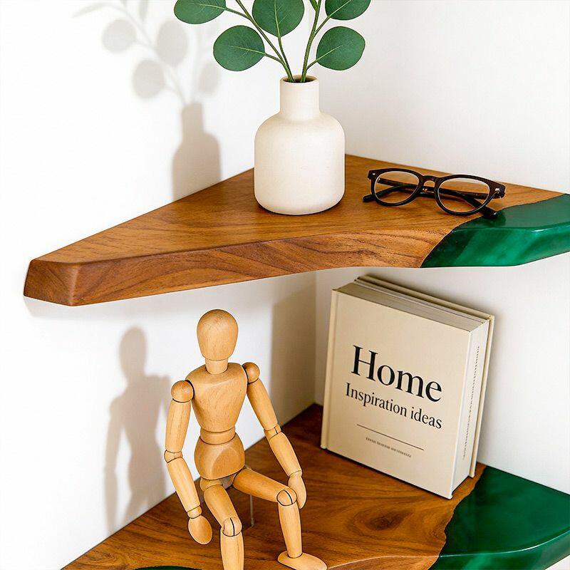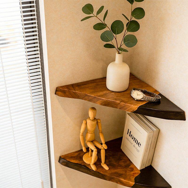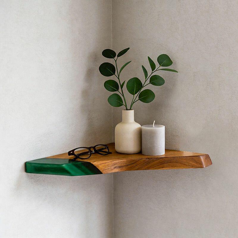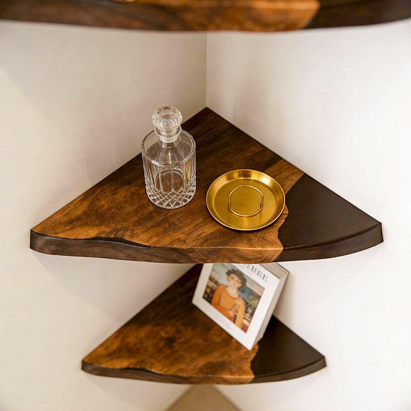 Rustic Modern Resin Wood Triangular Floating Corner Shelf Reslol Irregular Live Edge Decor