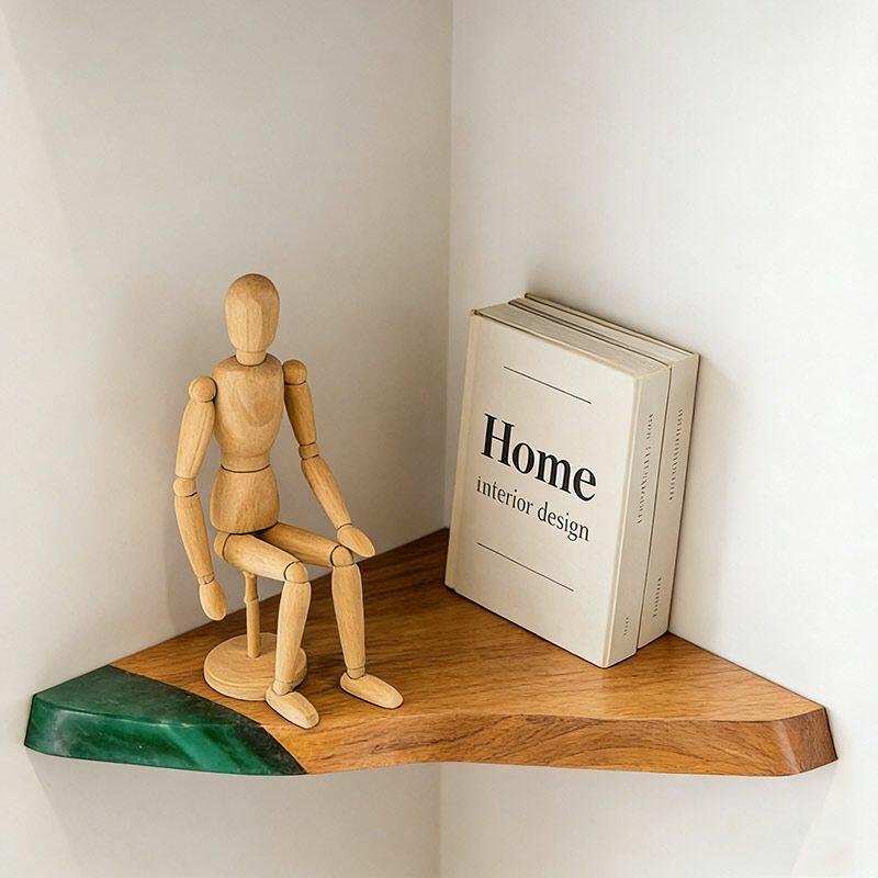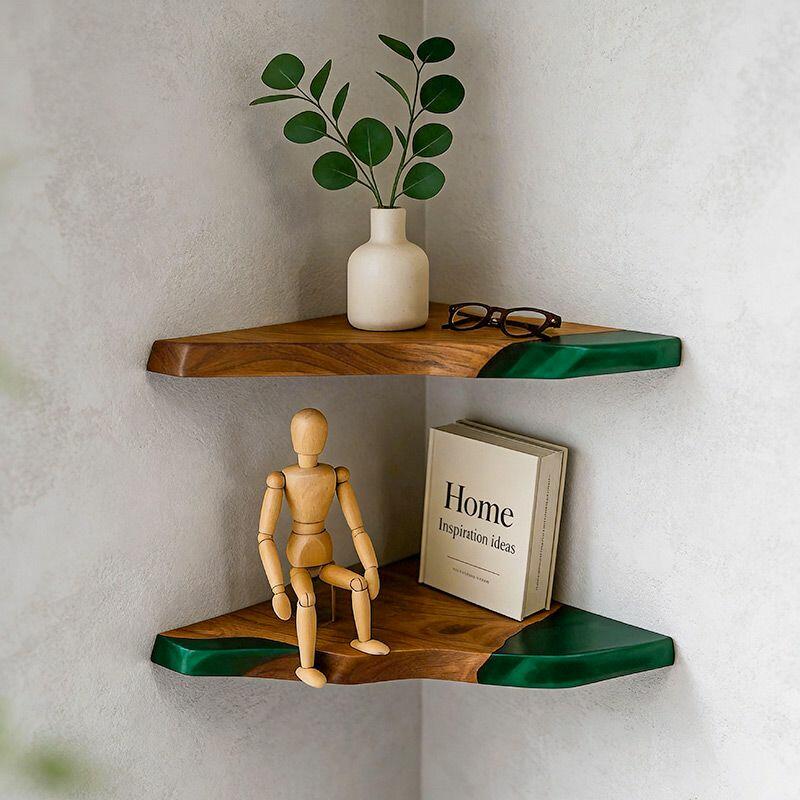 Elevate your corners with Reslol’s Handcrafted Rustic Modern Resin Wood Triangular Floating Shelf—where irregular live wood edges meet bold resin accents. This shelf transforms overlooked spaces into functional art, ideal for displaying decor, books, or wine bottles in living rooms, kitchens, or studies.
