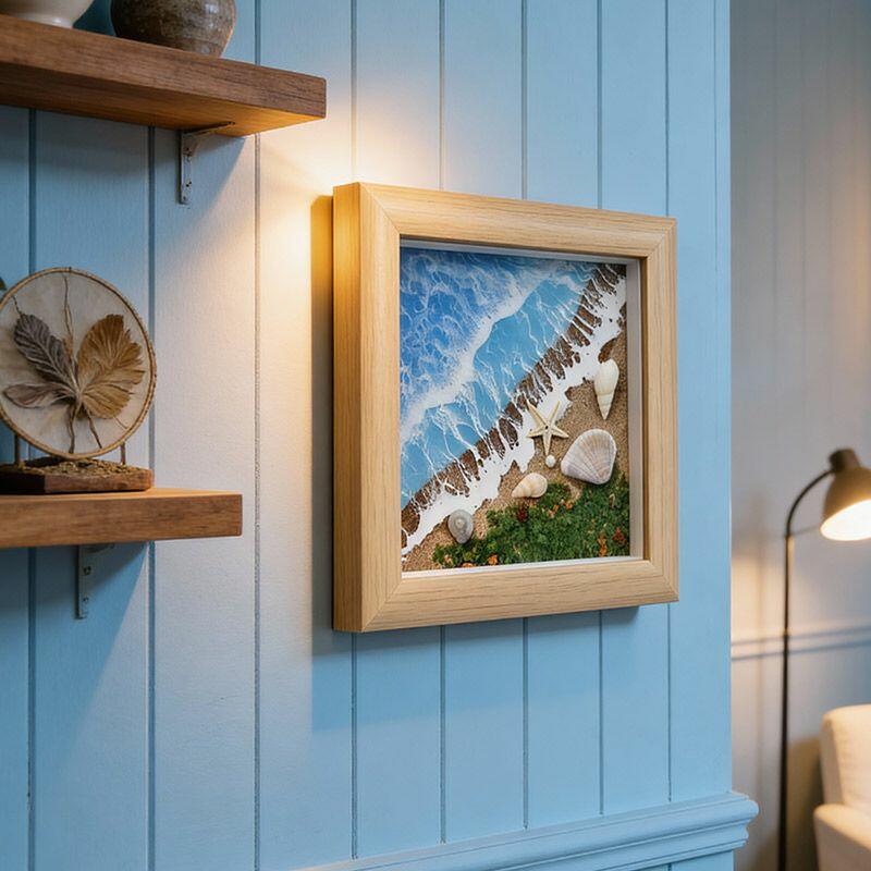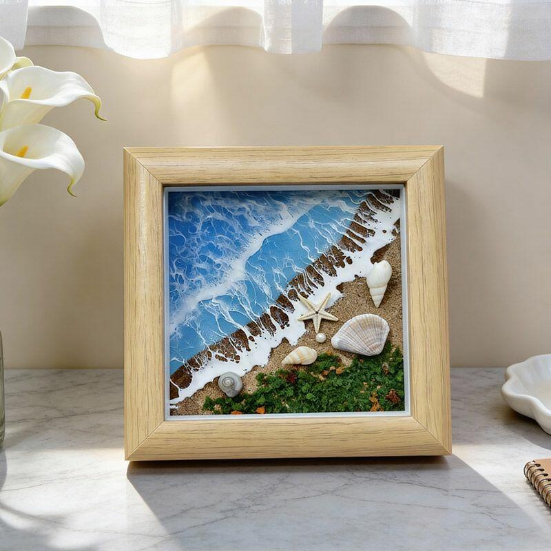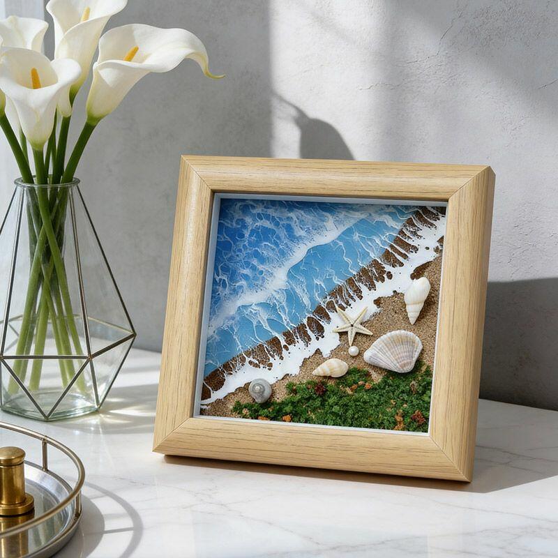 Elevate your space with Reslol’s Artisanal Serene Coastal 3D Resin Square Frame, a handcrafted masterpiece that captures the tranquil allure of the ocean. This unique tabletop art blends dynamic ocean waves, soft sand textures, and delicate shell accents, all encased in crystal-clear resin for a lifelike, immersive coastal vibe.