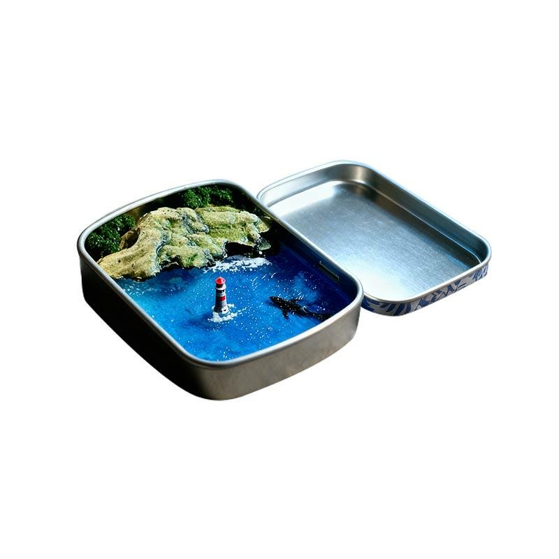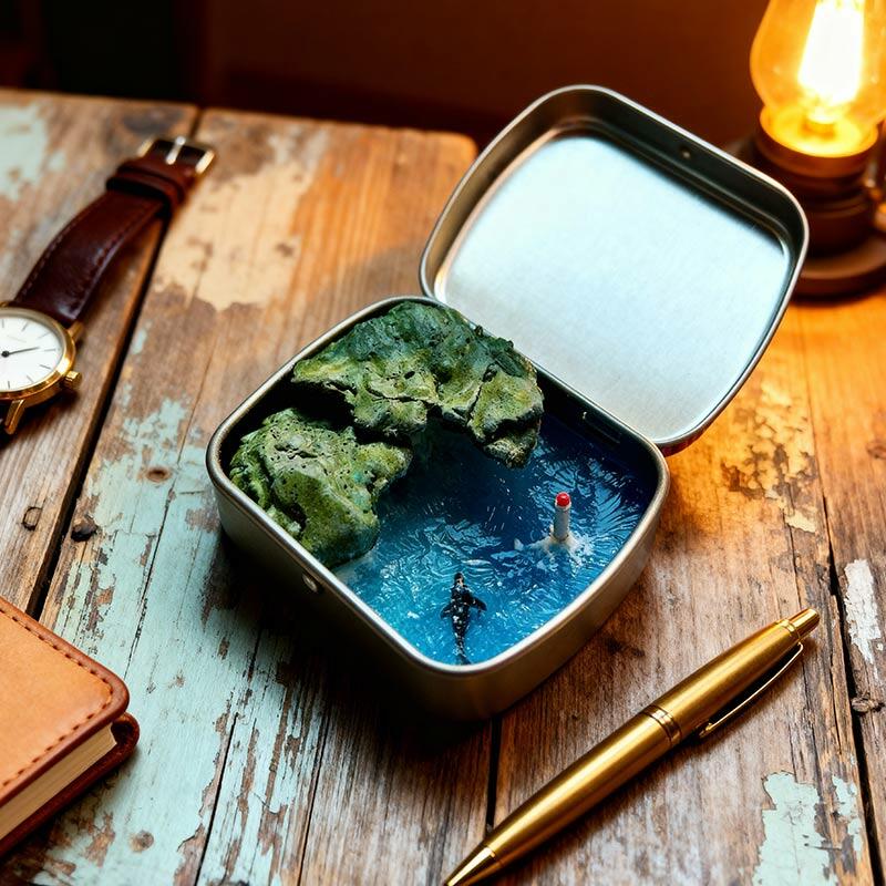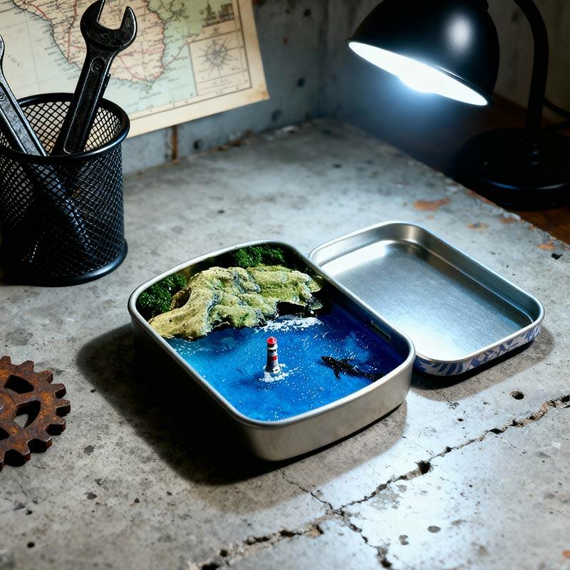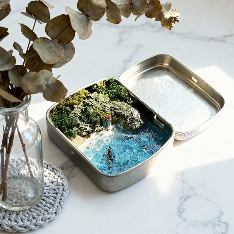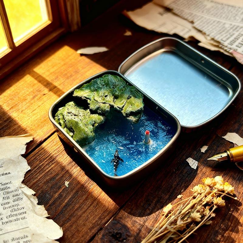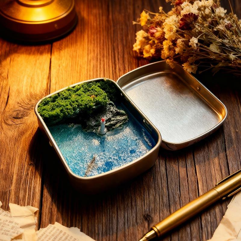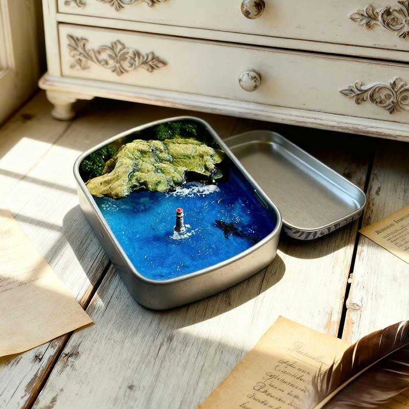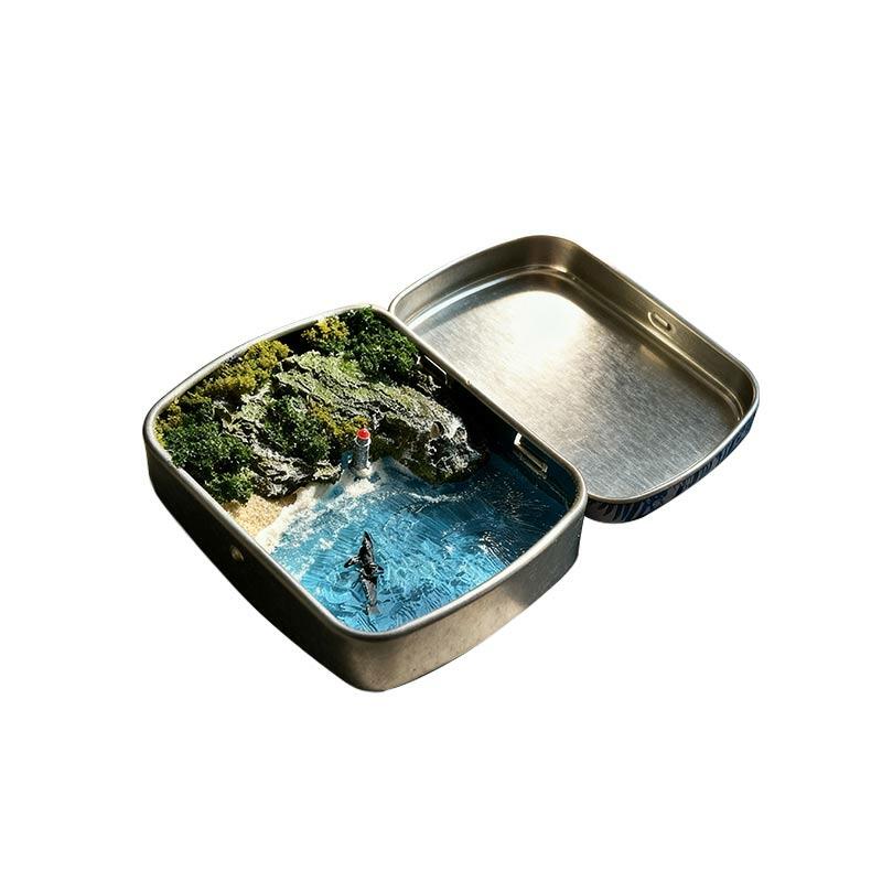 Serene Ocean Resin Miniature Scene with Metal Box, Coastal Decor Gift