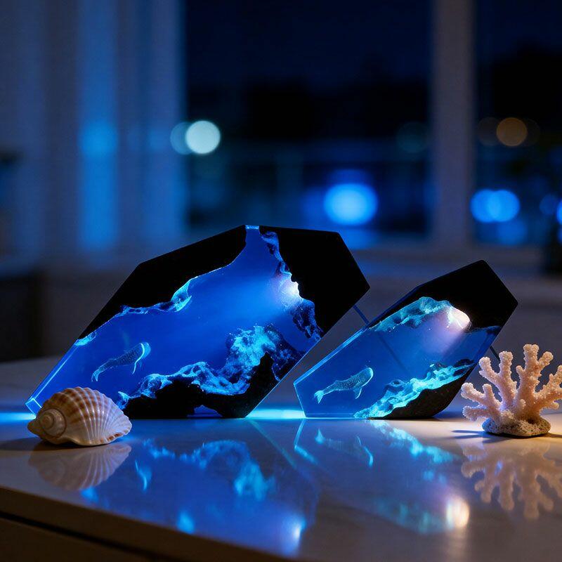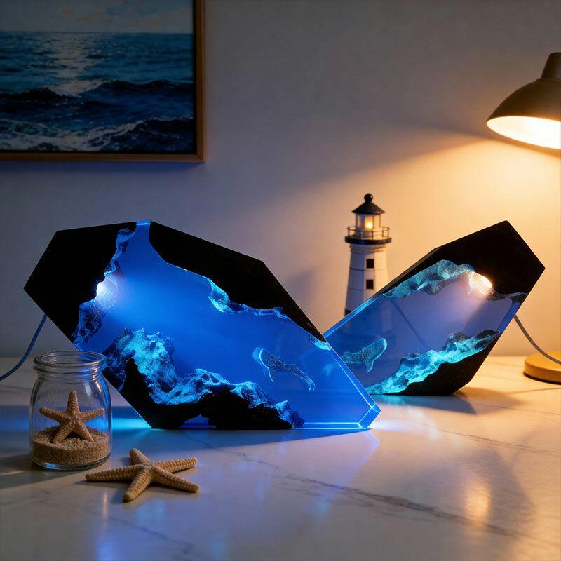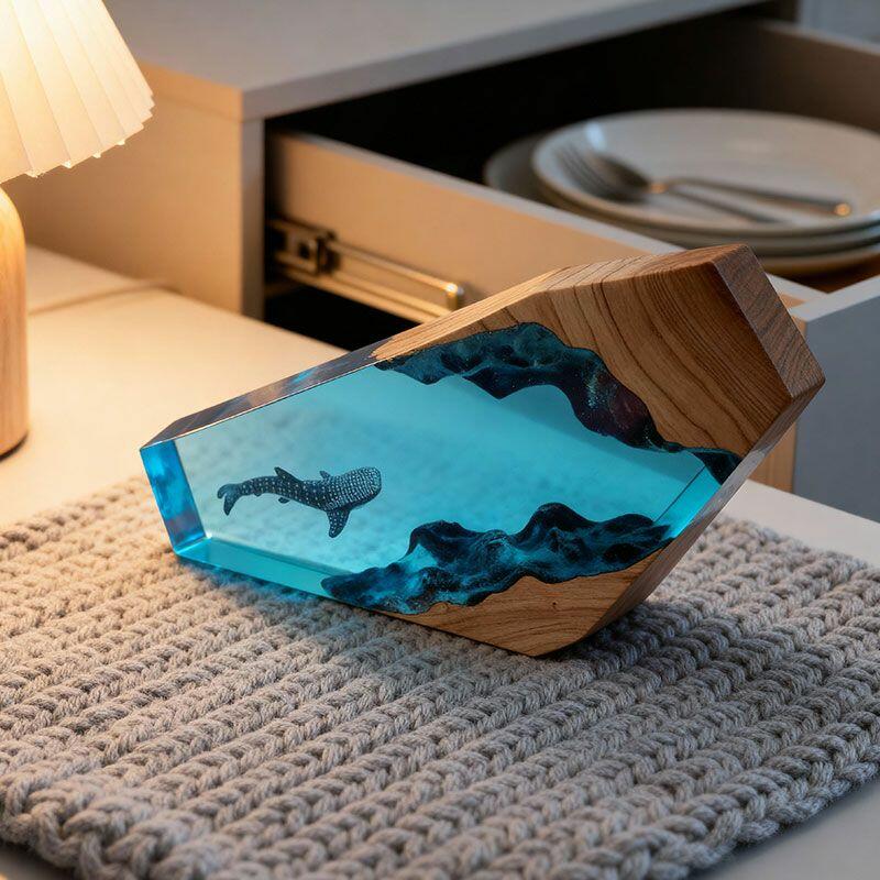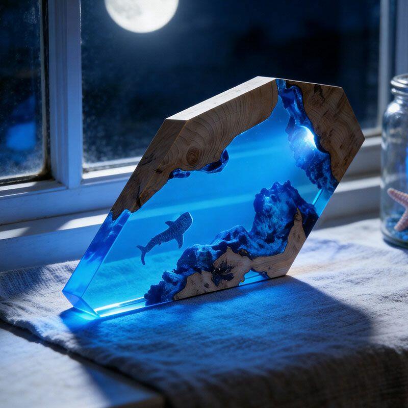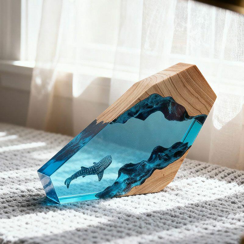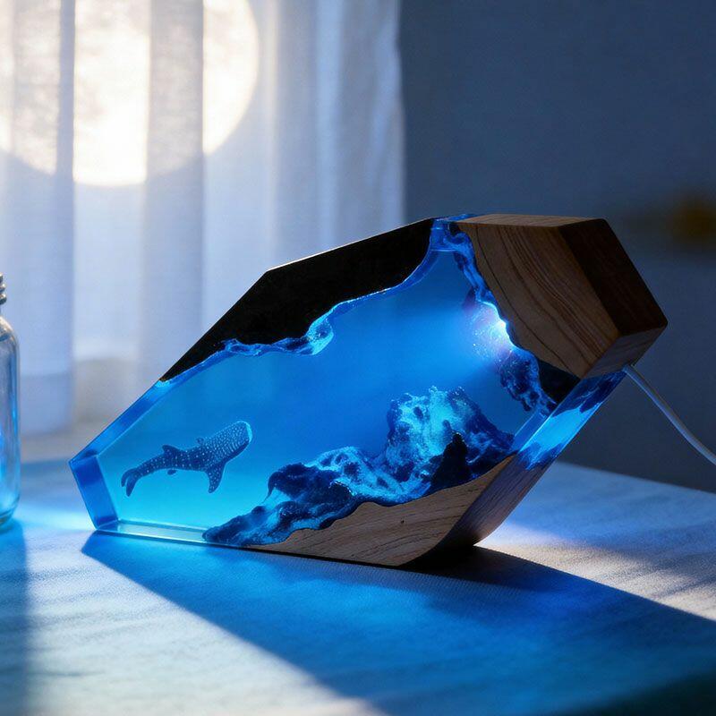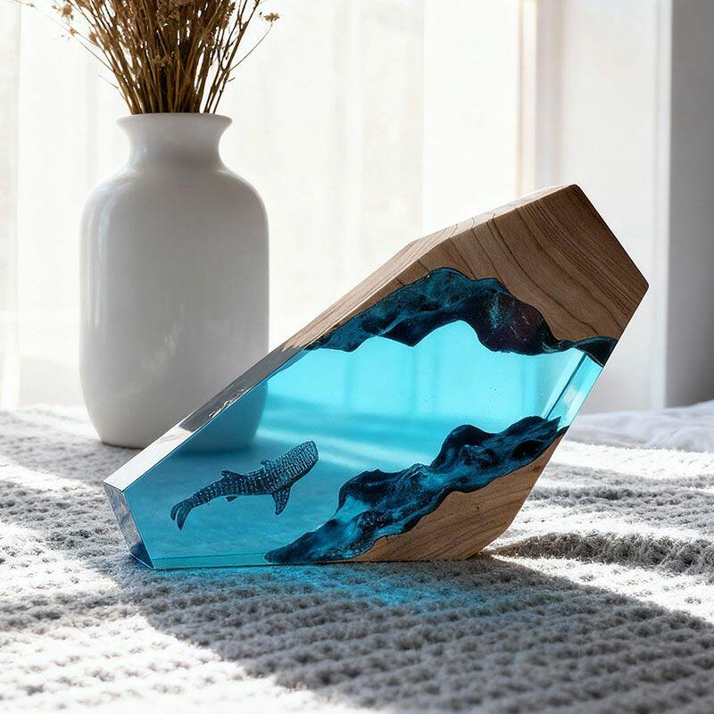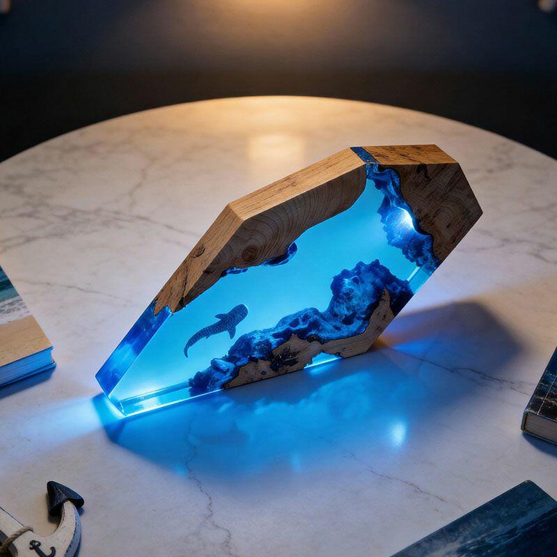 Dive into the ocean’s calm with Reslol’s Azure Drift Whale Shark Resin Wood Lamp. This handcrafted piece blends eco-friendly resin and sustainable wood, capturing a single whale shark in an irregular, wave-carved silhouette. The resin base shimmers like sunlit seawater, its translucent depths highlighting the giant’s streamlined form—hand-detailed with soft fin curves and subtle skin texture, as if gliding through a tide. Raw wood edges add earthy warmth, merging coastal charm with artisanal precision to turn any room into a peaceful marine retreat.