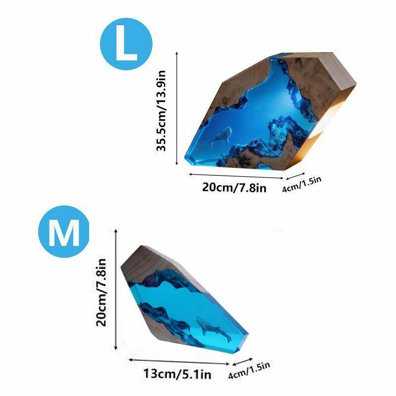 Each lamp is made with meticulous care: hand-poured resin ensures crystal clarity and even light diffusion, while reclaimed wood showcases natural grain. Due to artisanal crafting and organic materials, slight variations in color (resin may shift from pale blue to teal), resin flow, or wood texture are inherent—making every piece one-of-a-kind. Minor size differences may occur from manual measurement. Rest assured, all Reslol designs are original, independently created, and free from copyright infringement.