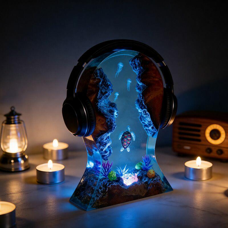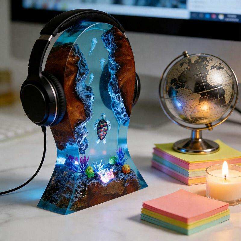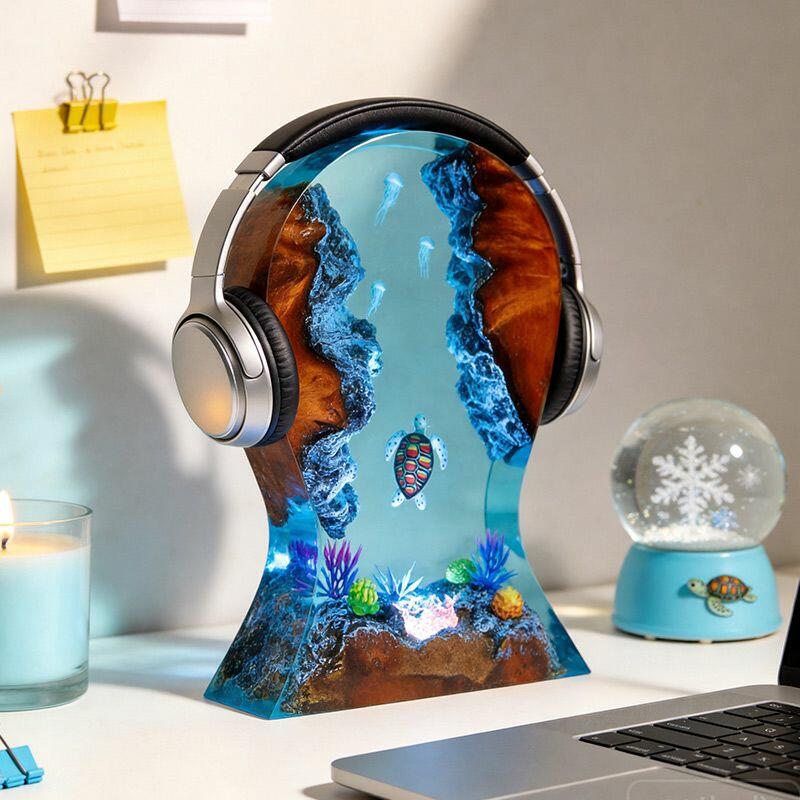 More than a lamp, it’s a blend of utility and art—perfect for music lovers, ocean enthusiasts, or anyone seeking to elevate their workspace. Place your headphones on the sturdy wood base, and let the marine scene add tranquility to your daily routine. As a handcrafted piece, it uses natural wood and resin, so slight variations in color, texture, or size (from manual measurement) make every stand uniquely yours.