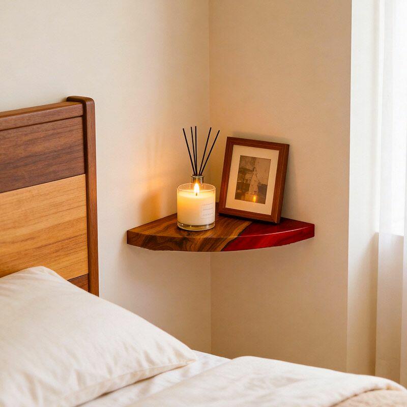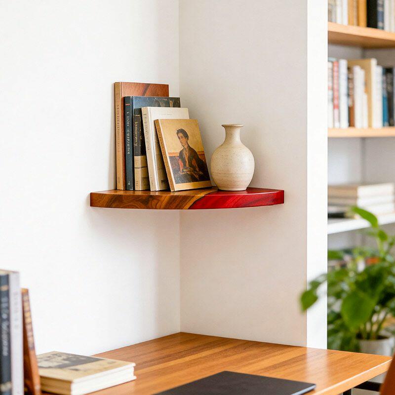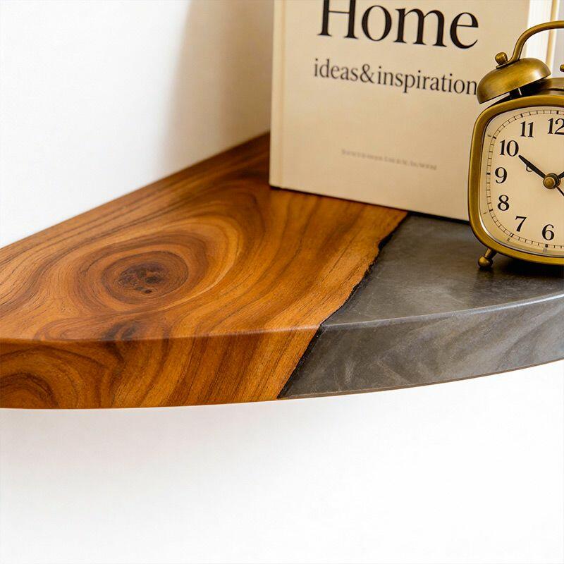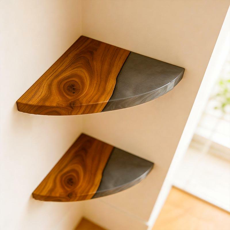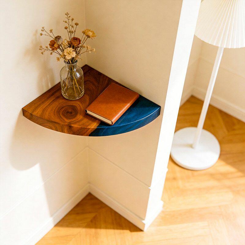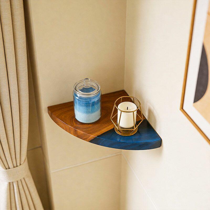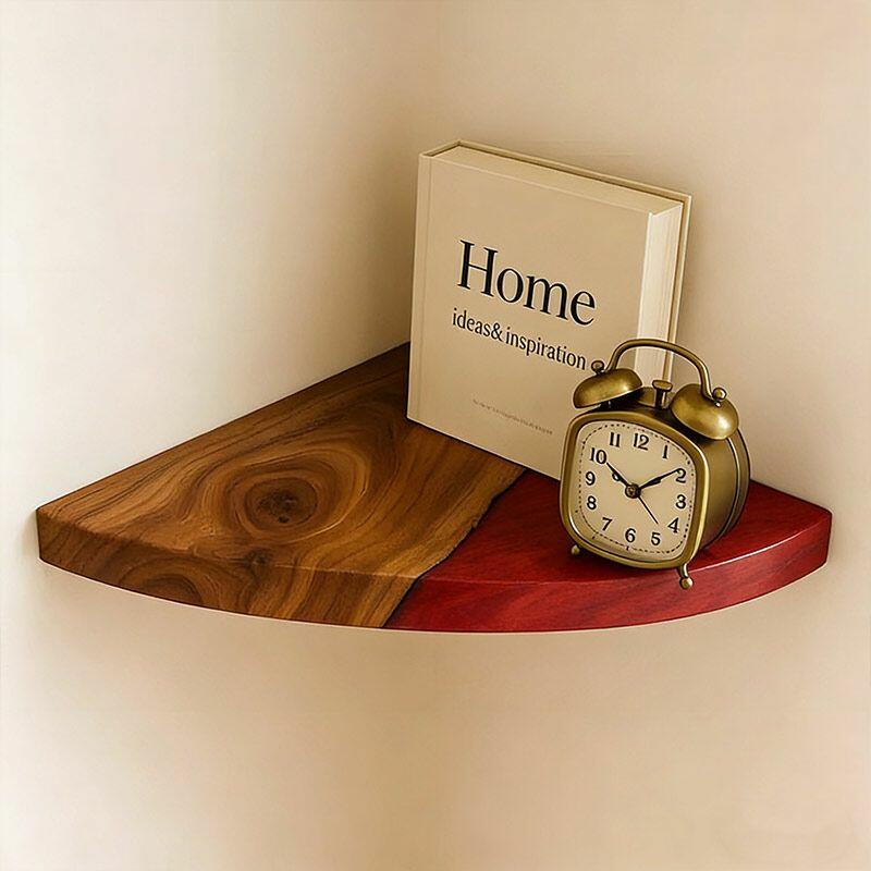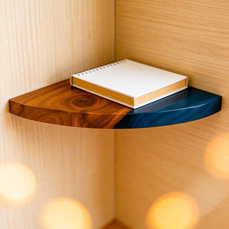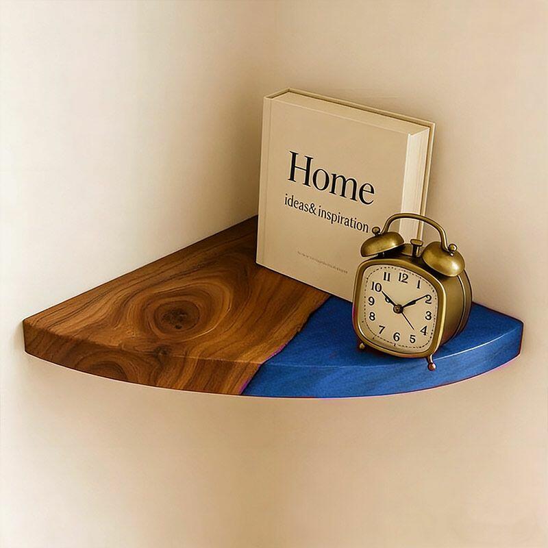 Sleek Live Edge Resin Wood Floating Corner Shelf – Reslol Artisanal Rustic Home Decor