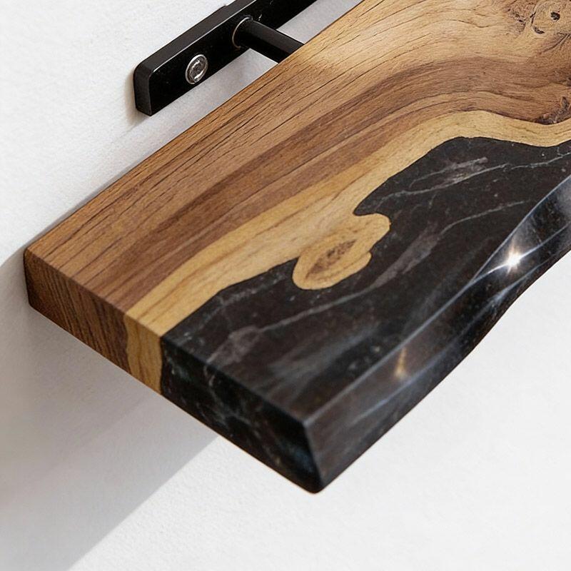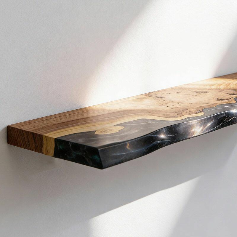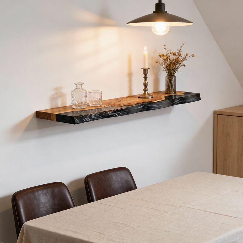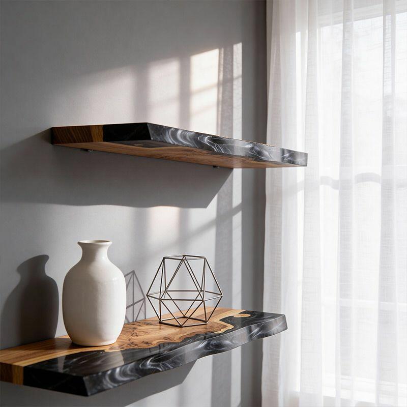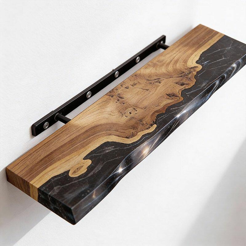 Transform your decor with the Reslol Sleek Modern Black Resin & Wood Floating Shelf, a fusion of contemporary style and artisanal detail. Black resin wraps around natural wood, creating a bold, modern look that celebrates the uniqueness of organic wood grains and smooth resin—crafted with care for eco-friendly, long-lasting quality.
