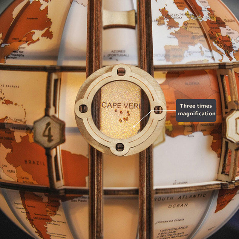 Composed of 180 pieces, this 3D wooden puzzle offers an engaging challenge. As you assemble each part, a detailed and beautiful globe gradually takes shape. The built-in lights add a magical touch, illuminating the globe and creating a mesmerizing visual effect.