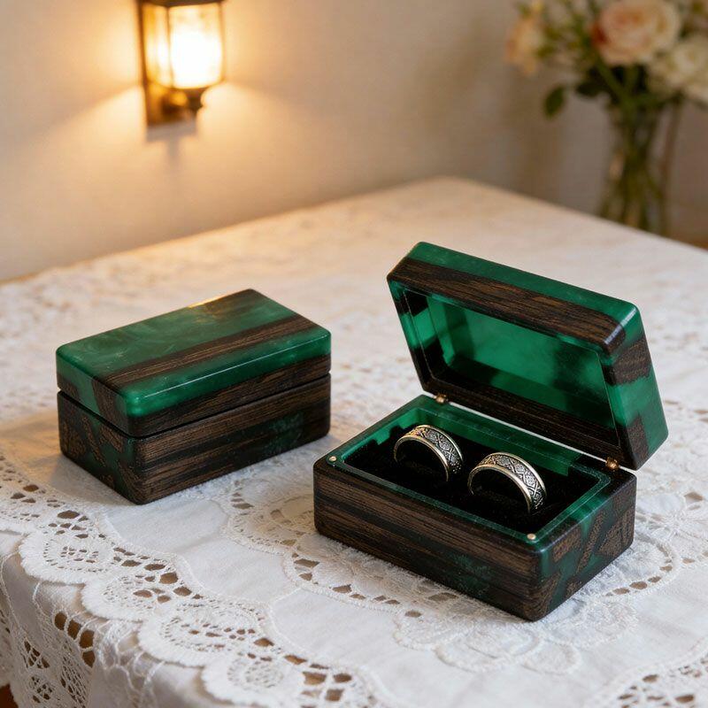 Elevate “forever” with the Artisan-Vintage Reslol Epoxy Wood Double Ring Box—a rectangular treasure where handcrafted artistry meets retro romance. Shaped by master craftsmen, this double ring holder merges wood’s earthy warmth with epoxy’s sleek glow, creating a compact yet luxurious piece that balances functionality (secure storage for two rings) with decorative allure (a vintage accent for her vanity).