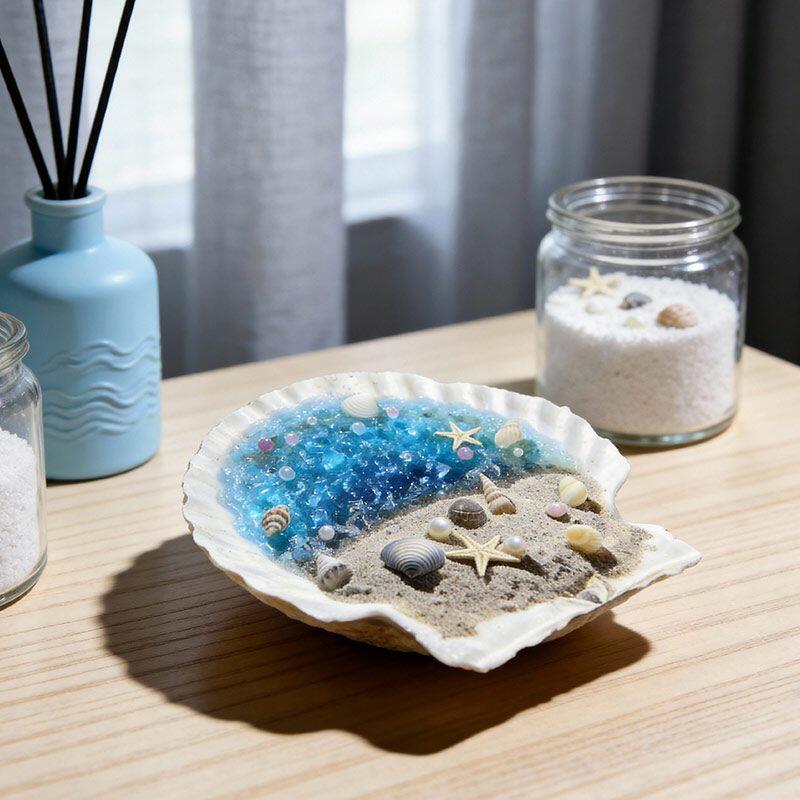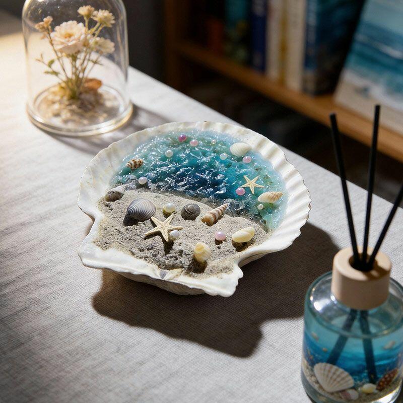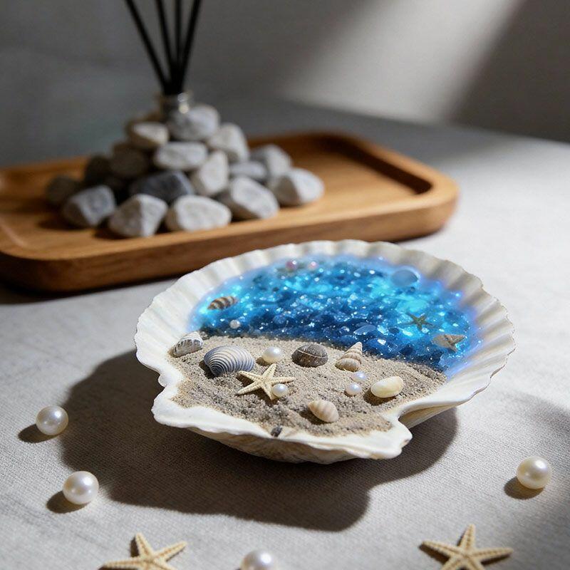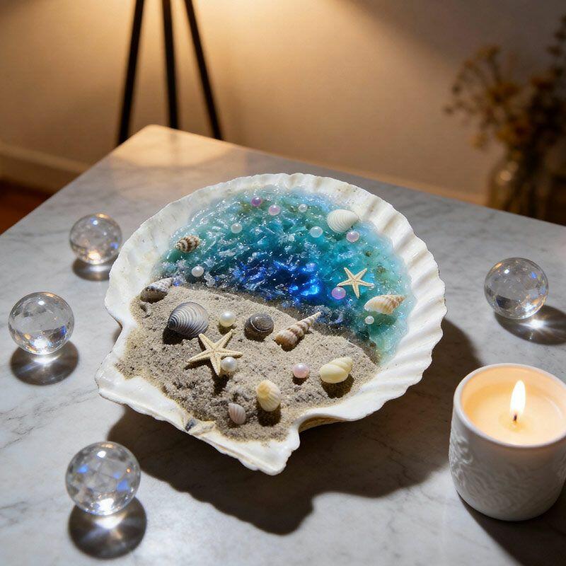 Designed for those who crave calm, it doubles as a decorative accent or a jewelry tray (ideal for holding small treasures). Each sculpture reflects artisanal dedication—no two are identical, thanks to the natural variations in sand grain, shell pattern, and resin swirls.
