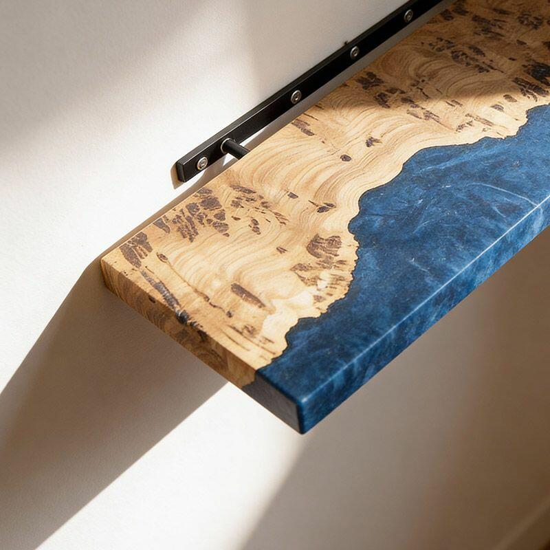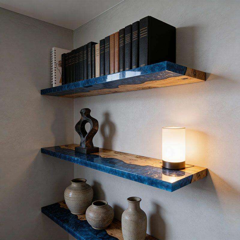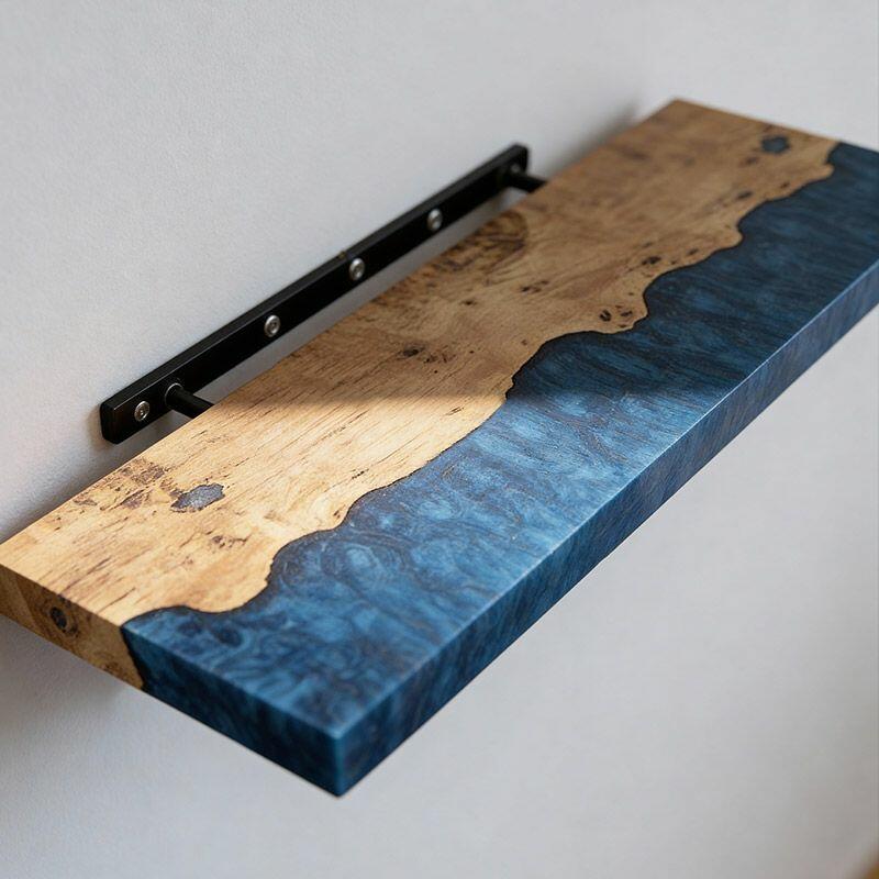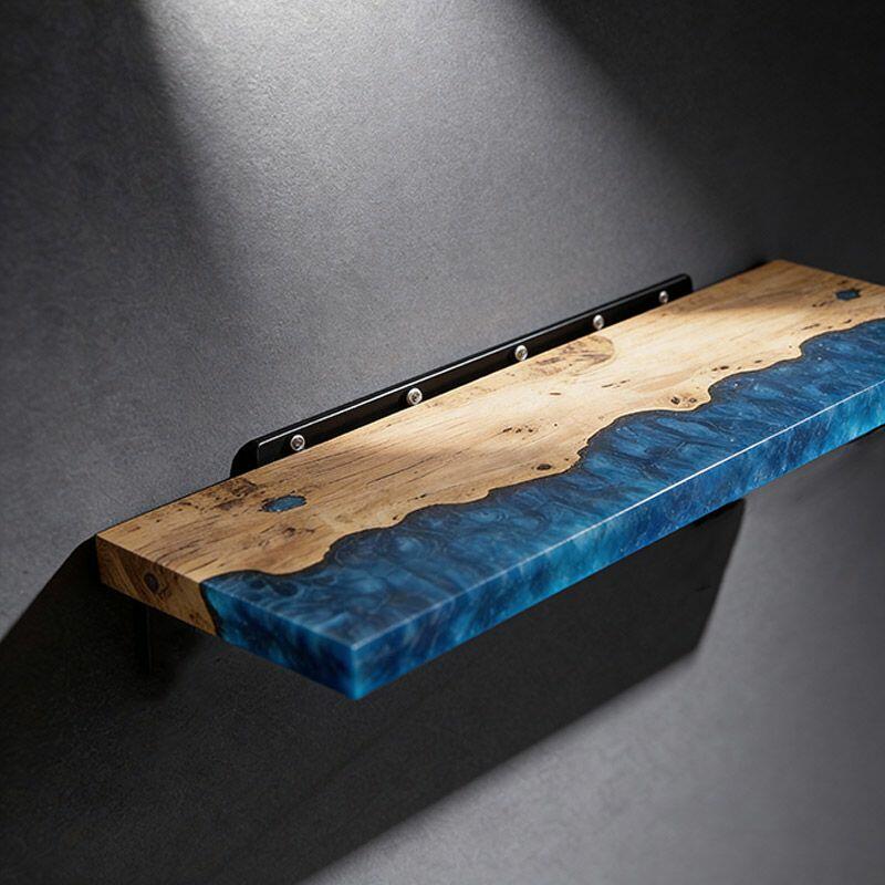 Unique Artisanal Blue Resin Wood Floating Shelf Reslol Home Decor