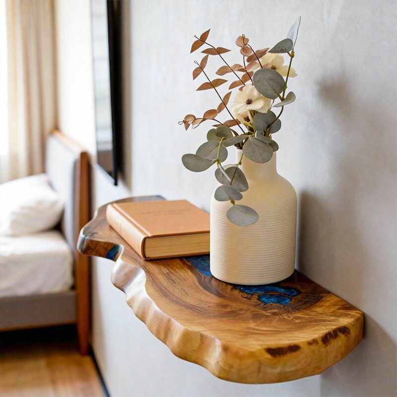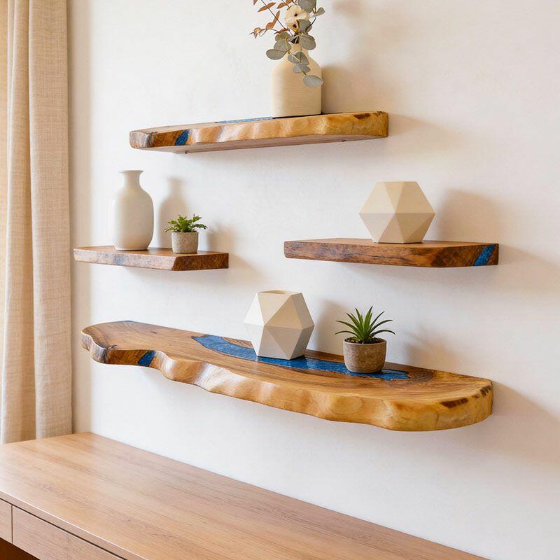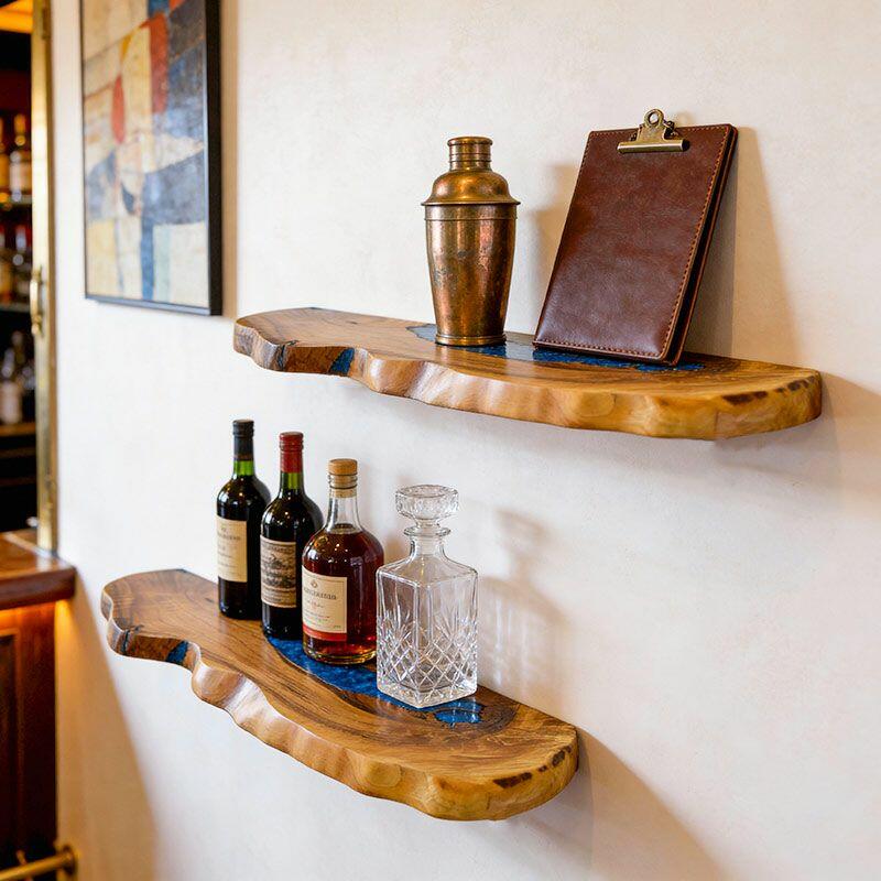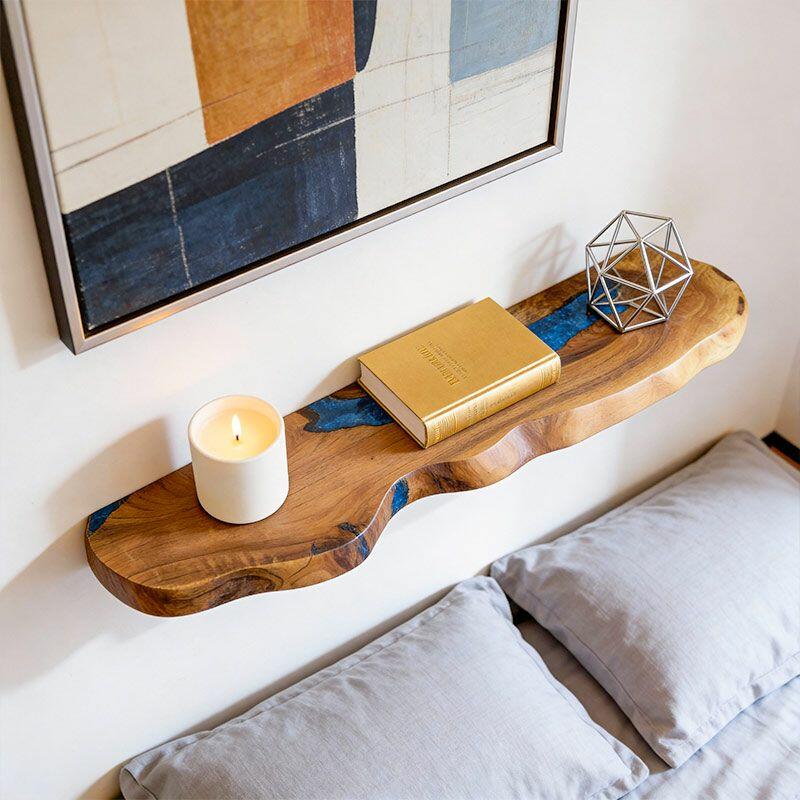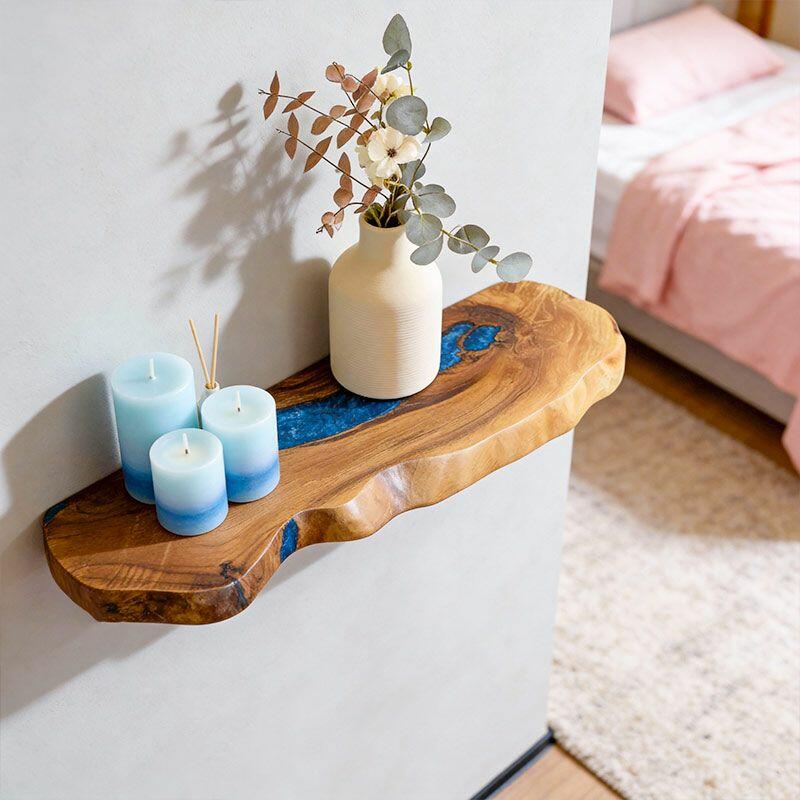 Ideal as a housewarming gift or to elevate your space, it comes in multiple sizes to fit any area. Note: As each shelf is handcrafted, slight variations in wood grain, resin color, and measurements add to its one-of-a-kind charm—no two are identical. All designs are original and independently crafted to avoid infringement.