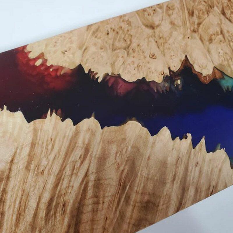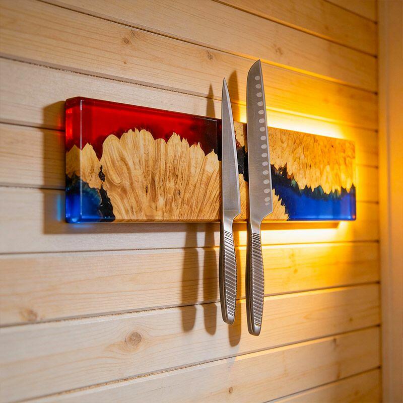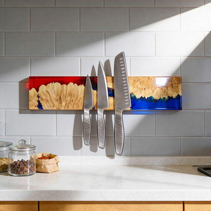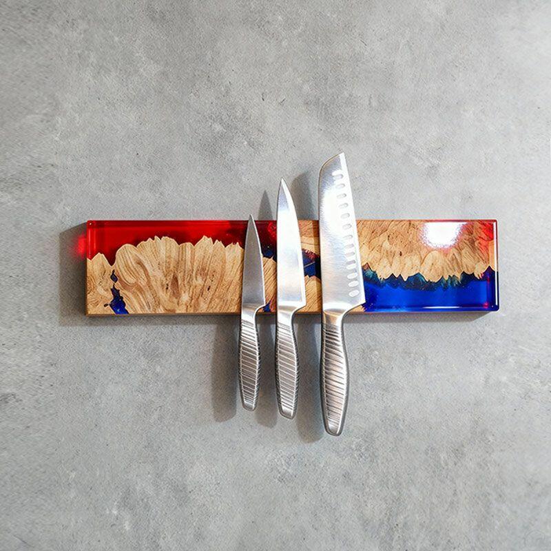 Unique Flowing Red-Blue Resin-Wood Magnetic Knife Holder – Housewarming Gift