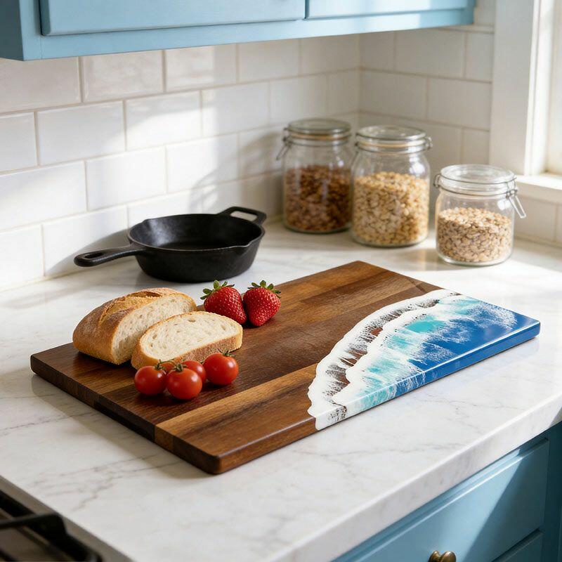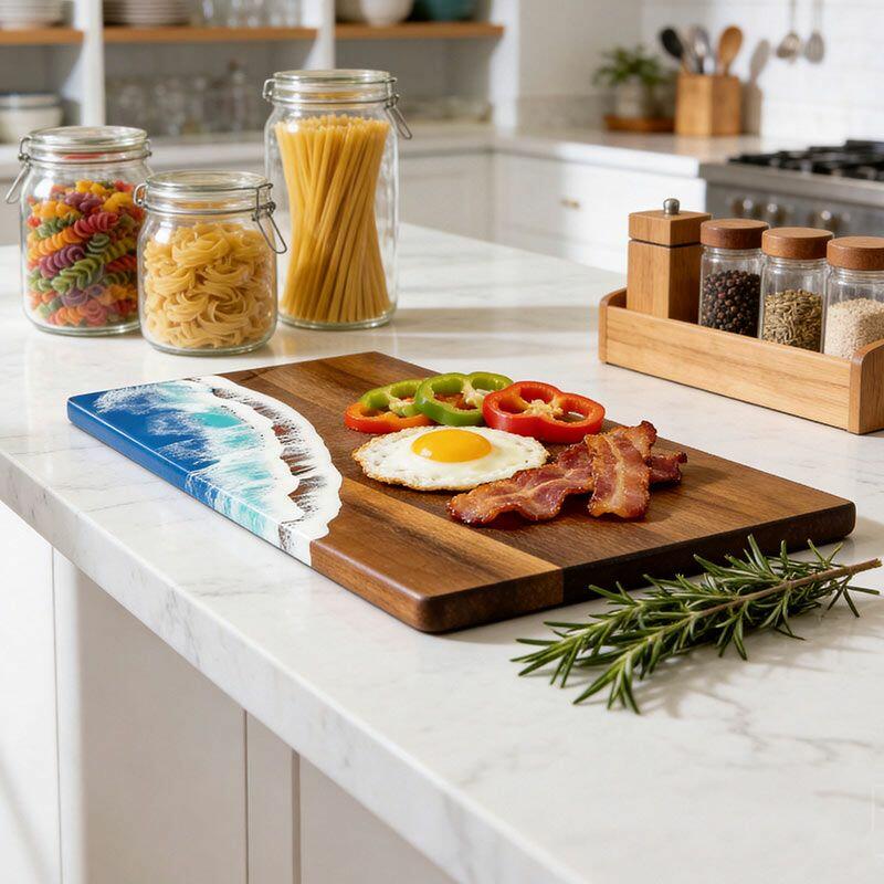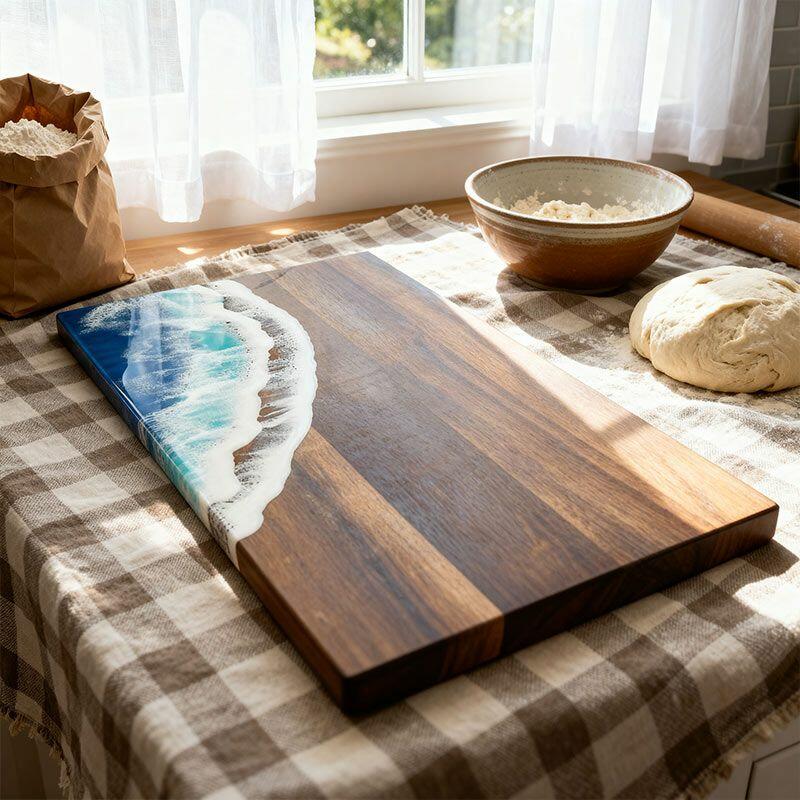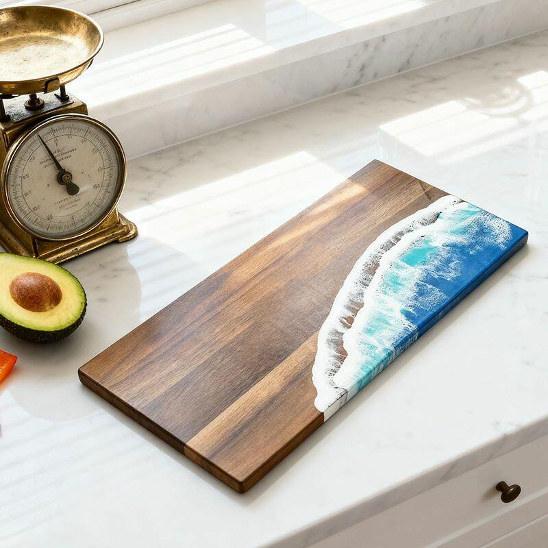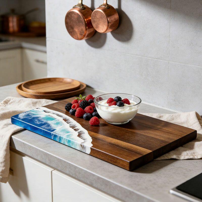 Unique Ocean Wave Resin Wood Rectangular Cutting Board | Reslol