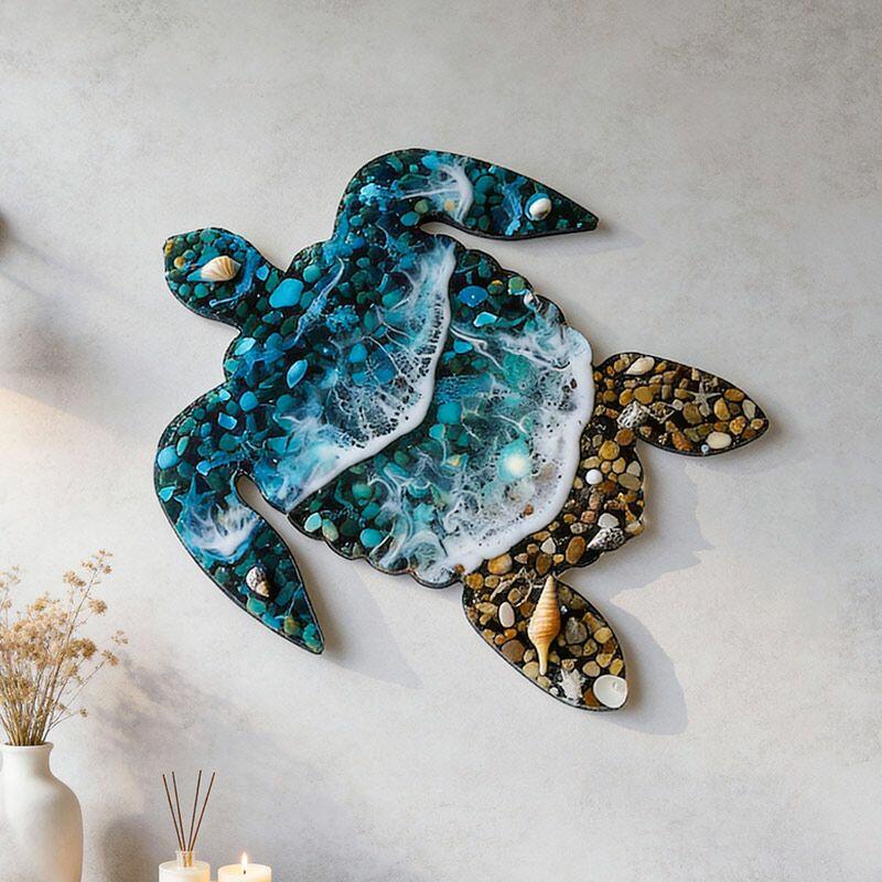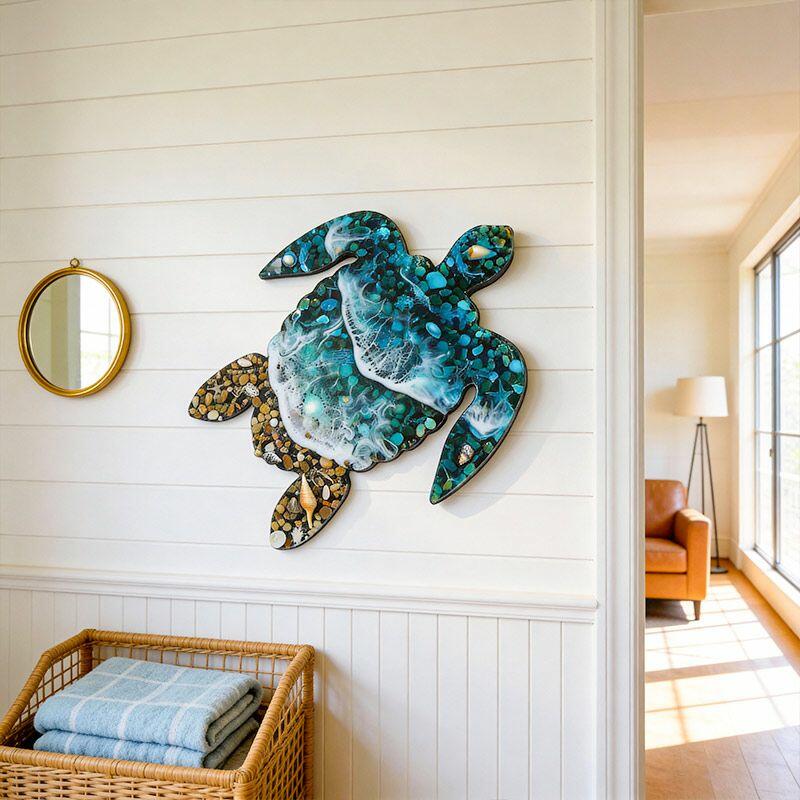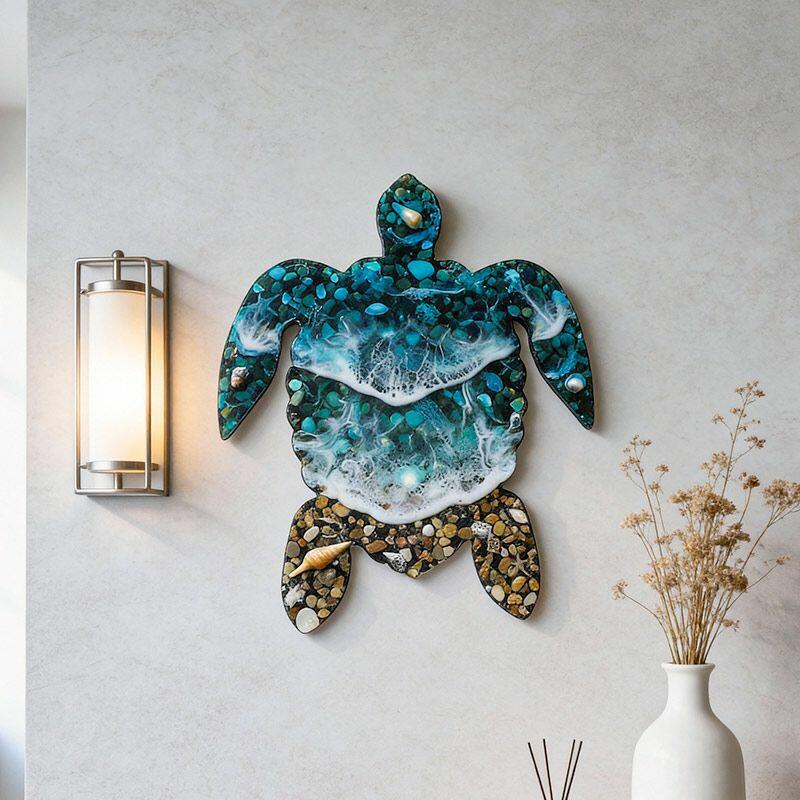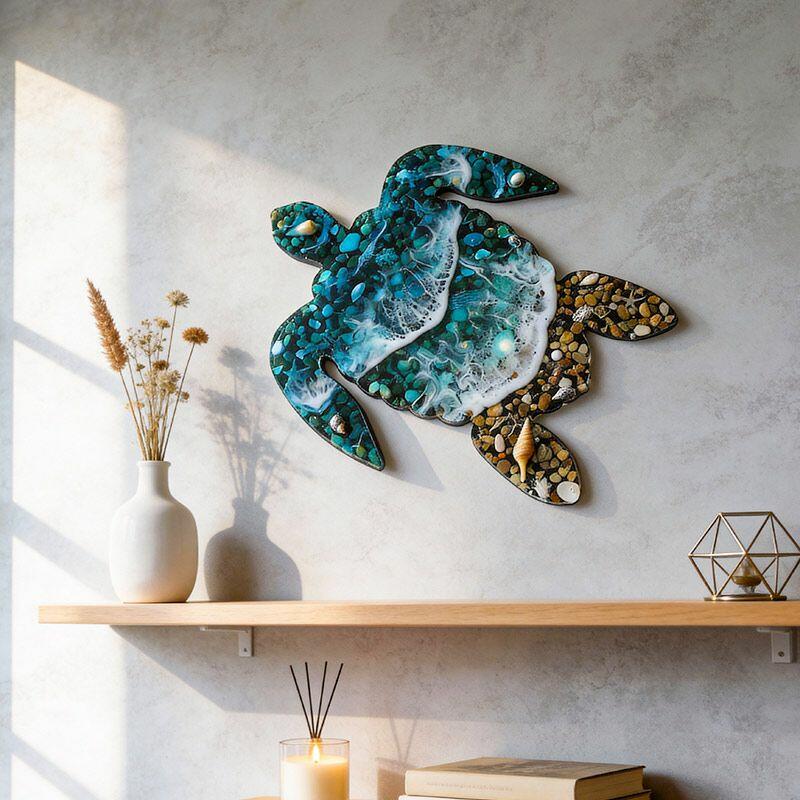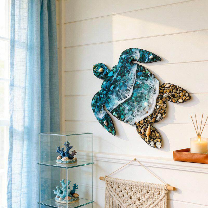 Unique Resin Sea Turtle Wall Art: Reslol Ocean Wave, Sand & Shells Coastal Decor