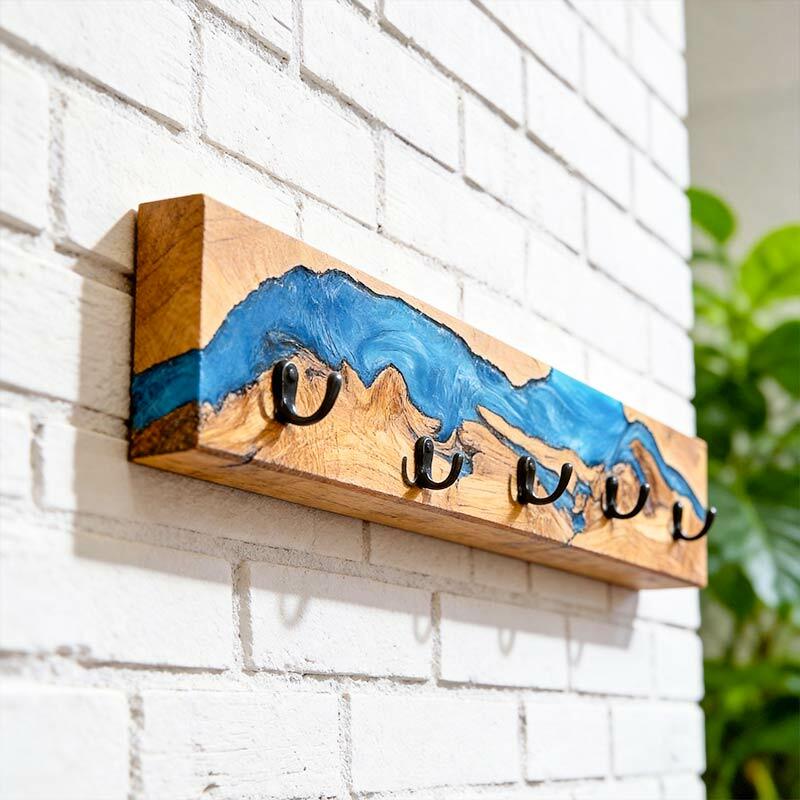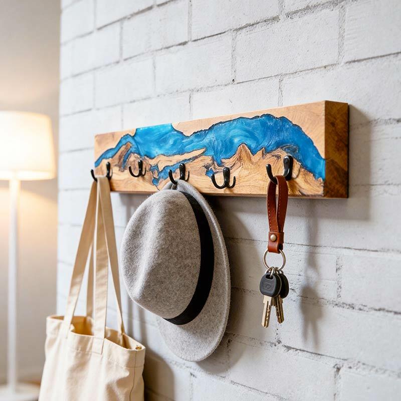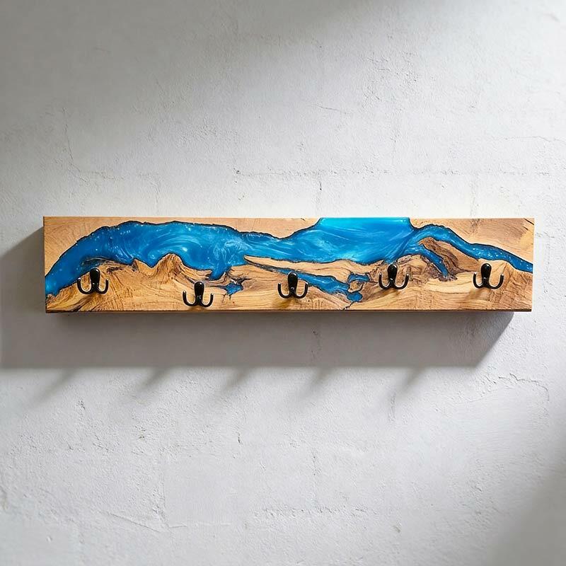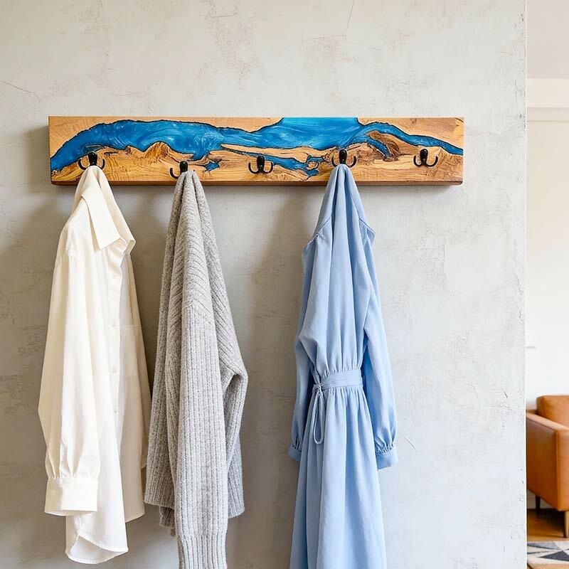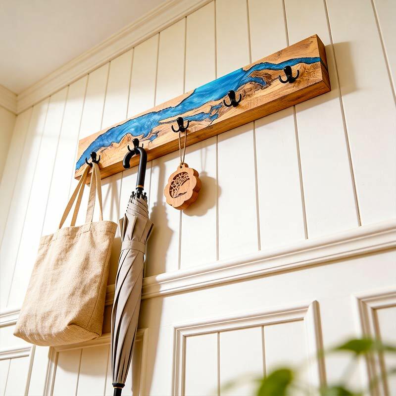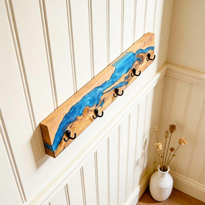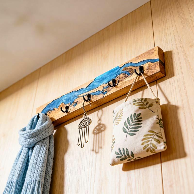 Reslol’s Resin River Wood Wall Rack marries natural wood with flowing epoxy resin, where the blue "river" weaves through organic wood grain—blending rustic warmth with artisanal charm. Handcrafted from solid wood, each piece showcases unique wood grain and resin patterns, turning functional storage into a focal point for entryways or living spaces.