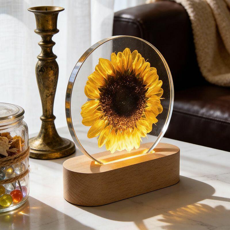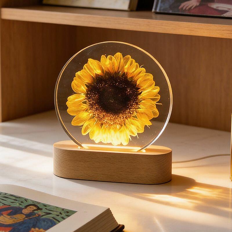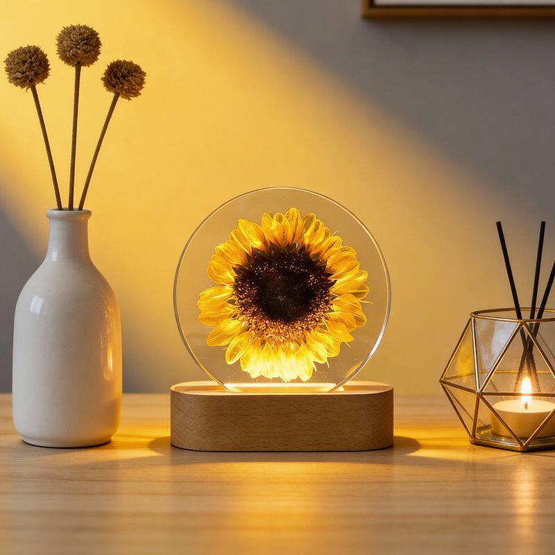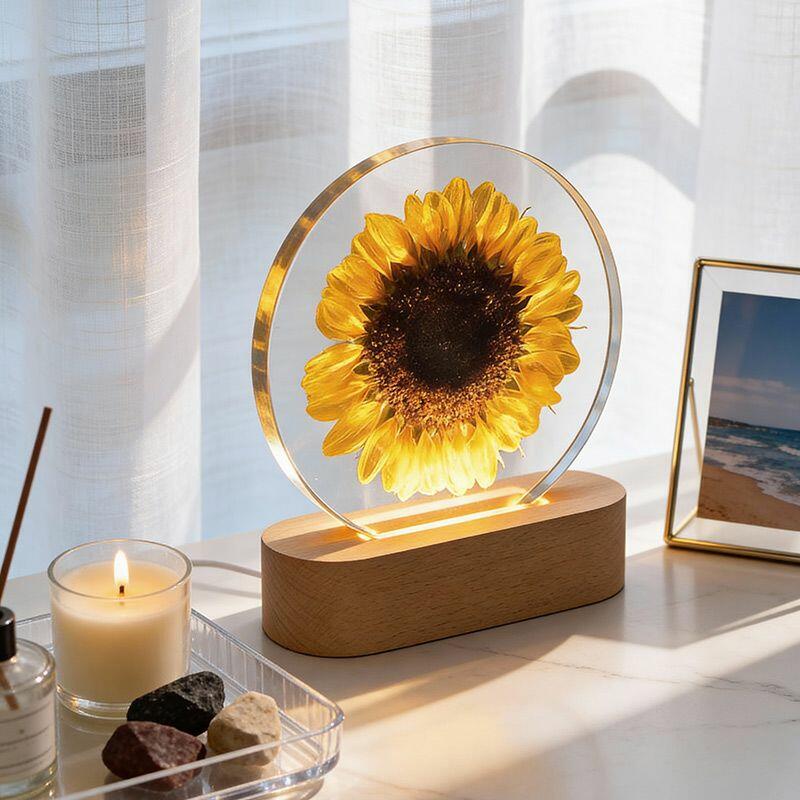 Illuminate your space with the Reslol Vibrant Eternal Sunflower Artisan Resin Lamp, a handcrafted round night light that captures the sunflower’s radiant charm in durable resin. Each lamp blends nature-inspired design with artisanal craftsmanship, featuring a lifelike sunflower motif that adds a warm, cheerful glow to any room.