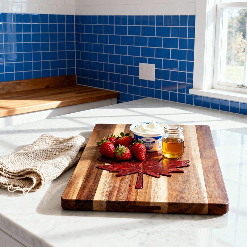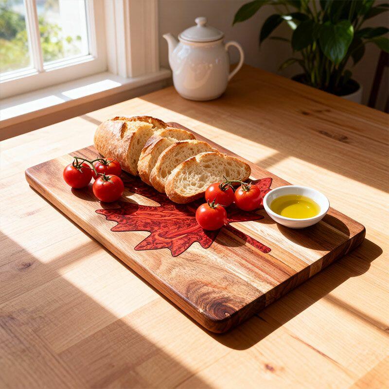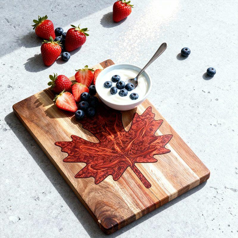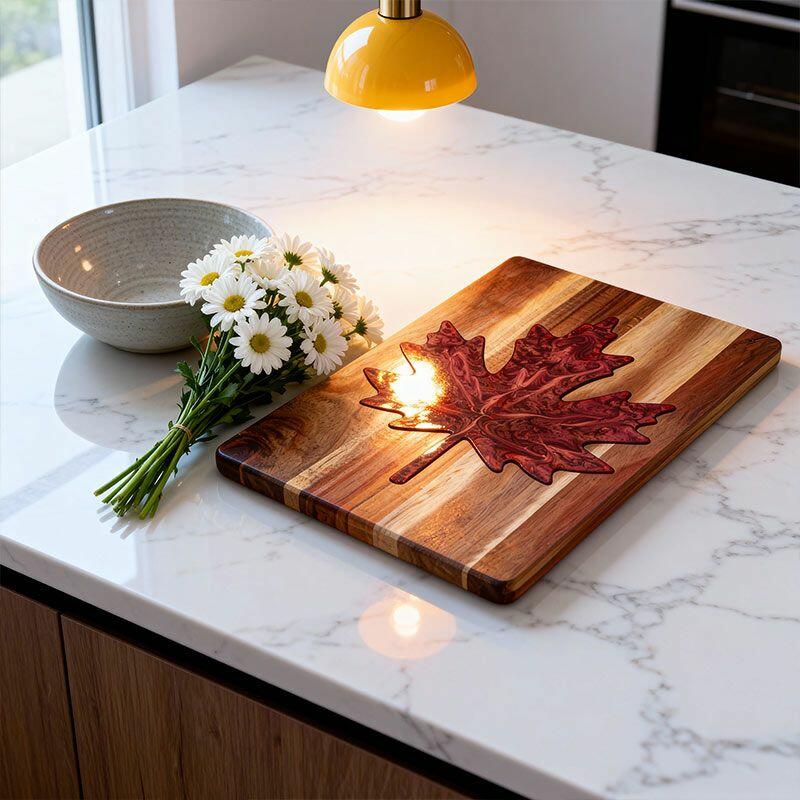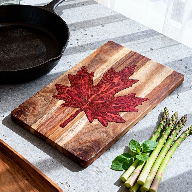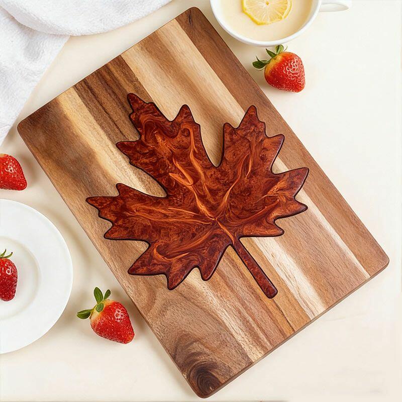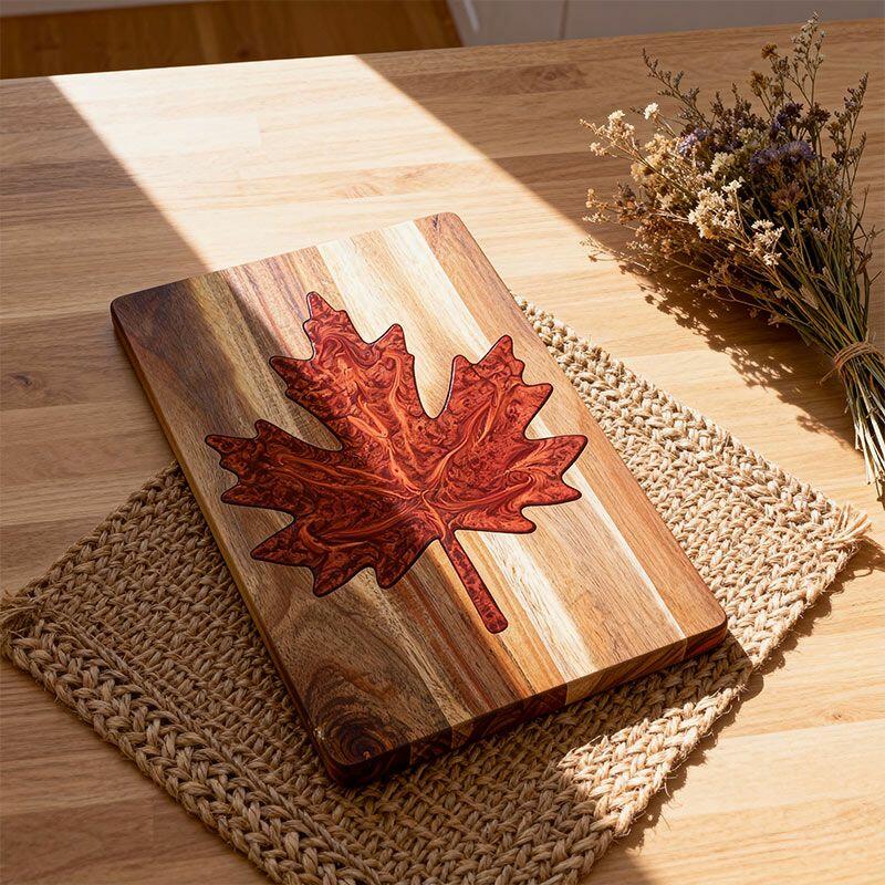 Vibrant Maple Leaf Resin Cutting Board - Handcrafted Acacia Chopping Board