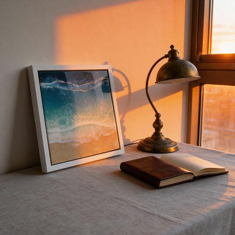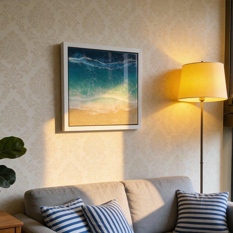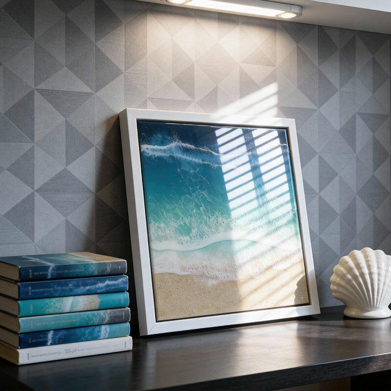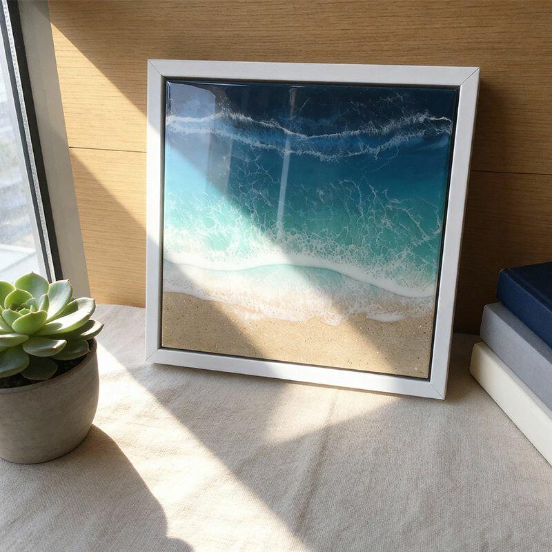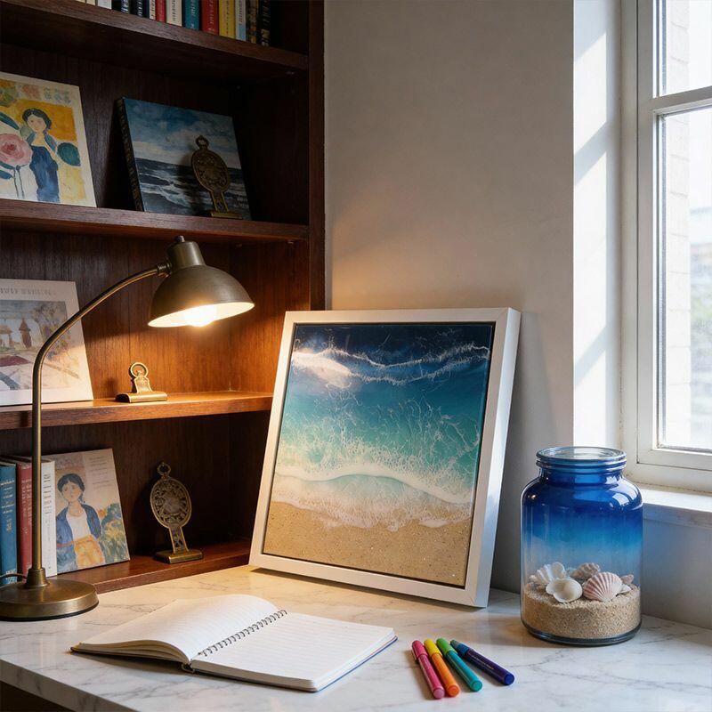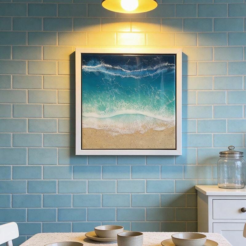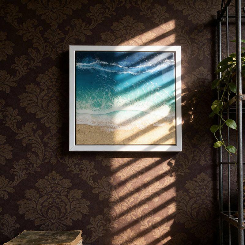 Vibrant Ocean-Themed Resin Art - Beach Waves & Sand Wall Decor