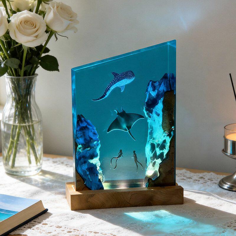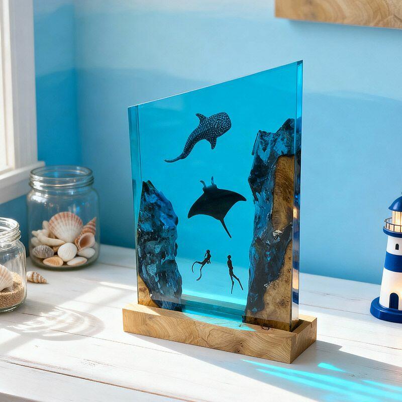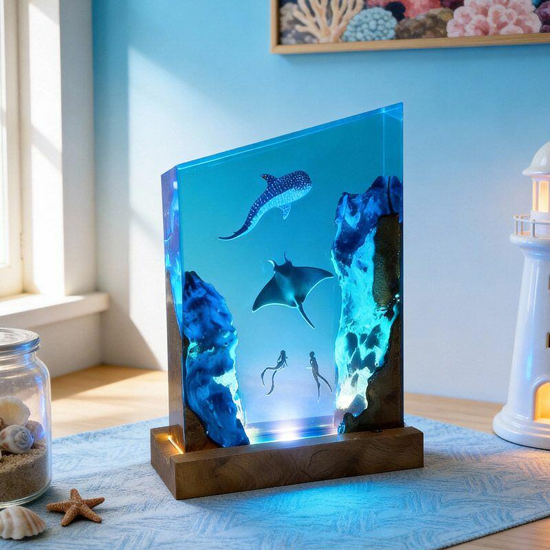 Crafted with artisanal precision, the lamp blends wood’s natural warmth with resin’s crystal clarity, creating a 3D-like depth that mimics sunlit ocean waters. The soft, diffused glow transforms any space into a serene underwater retreat, making it a striking decor piece for living rooms, bedrooms, or offices—perfect for ocean enthusiasts, couples, or anyone who craves a touch of nautical charm.